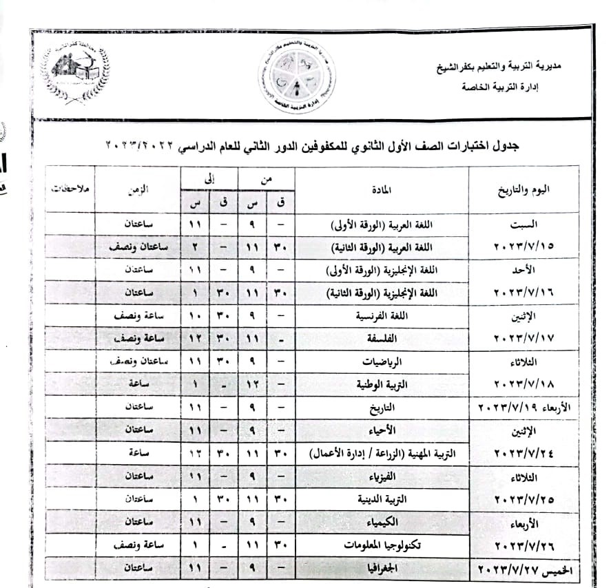 وأوضح أن جداول الدور الثاني لصفوف النقل والشهادة الإعدادية، توافقت مع هذه الأجازة، وحرصا من اللواء جمال نور الدين، محافظ كفر الشيخ، على قضاء الطلاب وأولياء والمعلمين الإجازات الرسمية فوجه محافظ كفر الشيخ، محمد عبدالله، وكيل الوزارة، بتعديل امتحانات الدور الثاني على أن تبدأ جميعها الاثنين 24 يوليو.