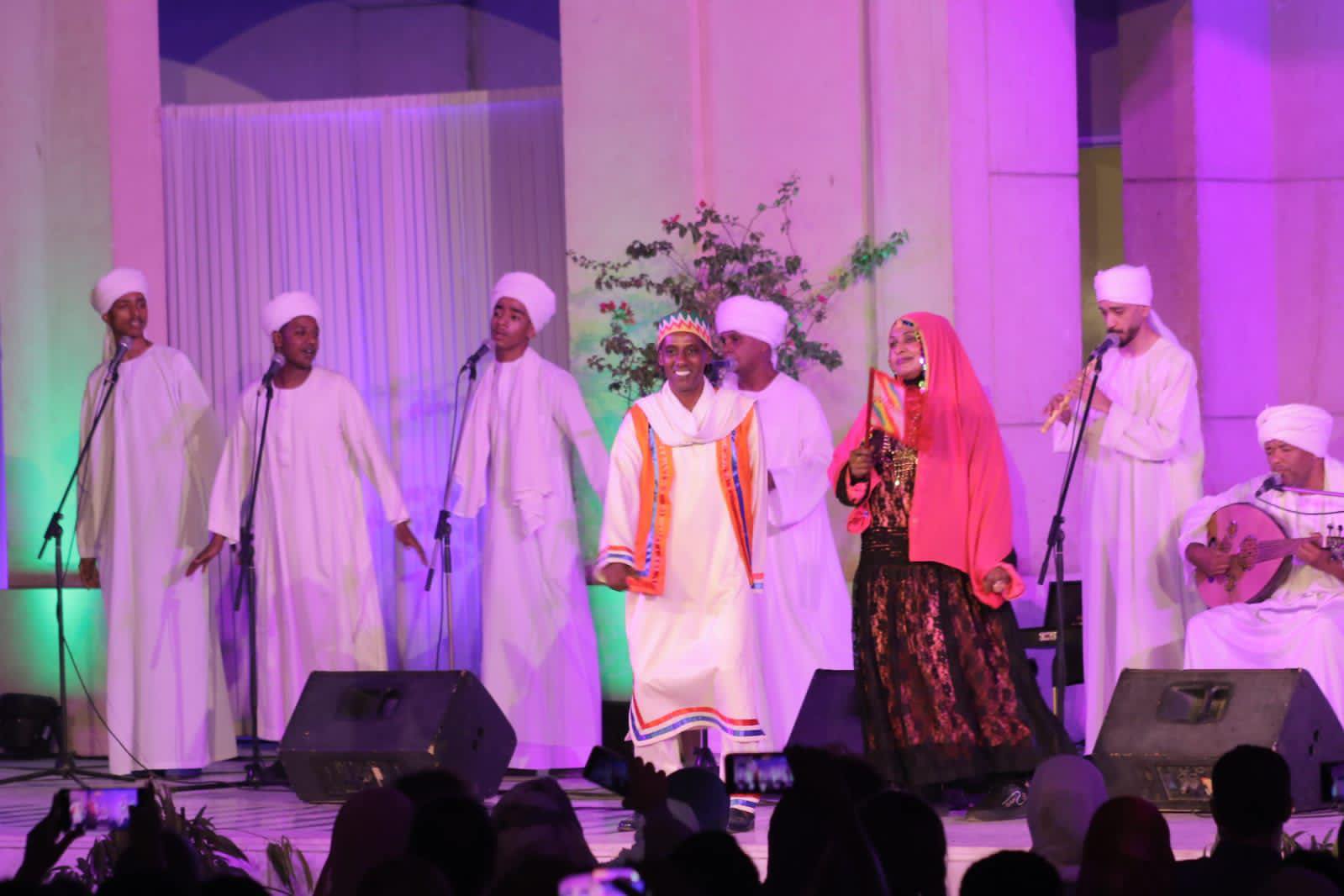 وتغنت بمجموعة مختارة من أعمال الراحل الشهير أحمد منيب إلى جانب عدد من الأعمال التراثية التى تروى قصصا من ذاكرة أبناء أرض الذهب وصاحبها تابلوهات حركية.
