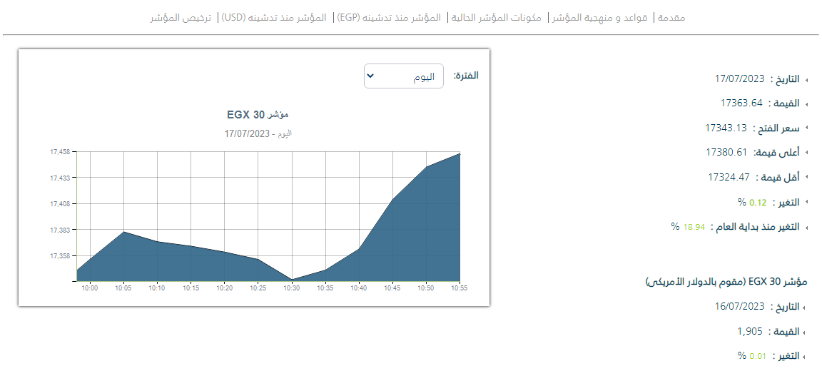 ارتفع مؤشر "إيجي إكس 30" بنسبة 0.03% عند مستوى 17348 نقطة.