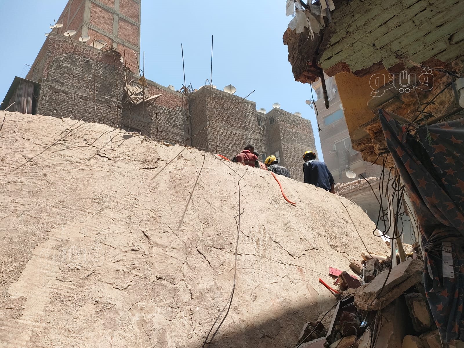 قوات الإنقاذ تواصل رفع أنقاض عقار حدائق القبة المنهارة (فيديو وصور)
