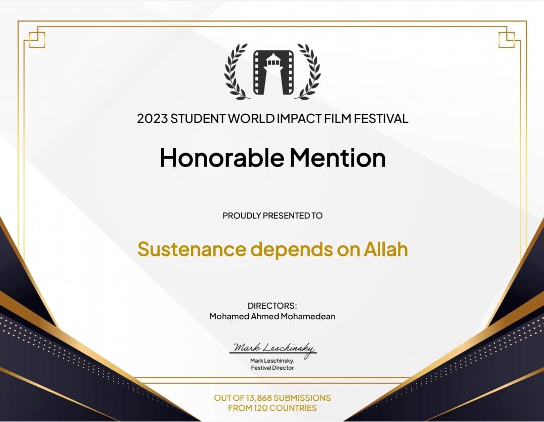 حصل الفيلم التسجيلي المصري" الرزق على الله"، على تكريم خاص من إدارة مهرجان فيلم "SWIFF " الأمريكي، عن أفلام الطلبة التي تمس واقع الحياة والمجتمع، وذلك لعرضه معايشة واقعية لحياة الصيادين في محافظة الإسماعيلية، وكيف يواجهون الحياة وسط التحديات التي تهدد تلك المهنة.