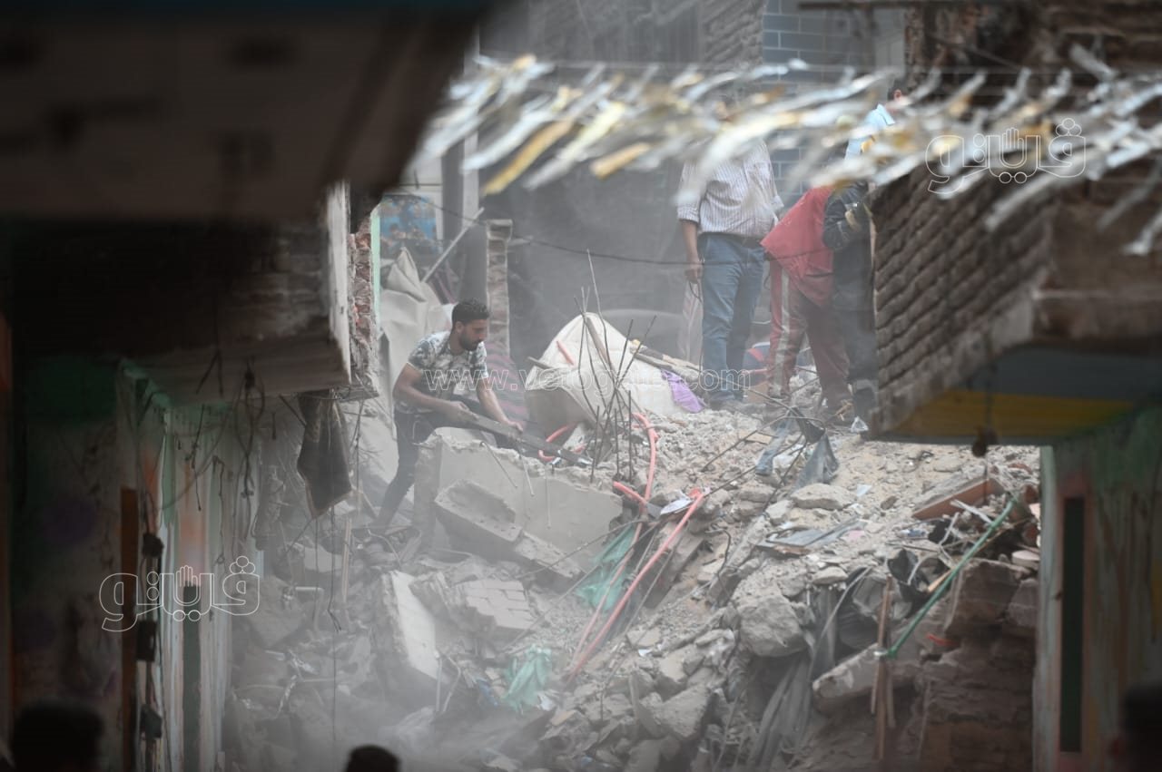 استمرار رفع أنقاض عقار حدائق القبة المنهار بحثًا عن المفقودين ( فيديو وصور)