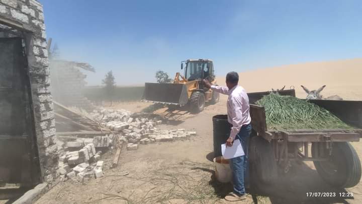 يذكر أن محافظة الوادي الجديد، أعلنت نهاية الأسبوع الماضي، تنفيذ ٣٦ حالة إزالة تعديات على أراضي زراعية واسترداد ٢٠٠٤ فدان، و٣ حالات مخالفات مباني بمساحة ٥٠٠ م٢ تم رصدها من خلال وحدات المتغيرات المكانية بنطاق مراكز المحافظة.