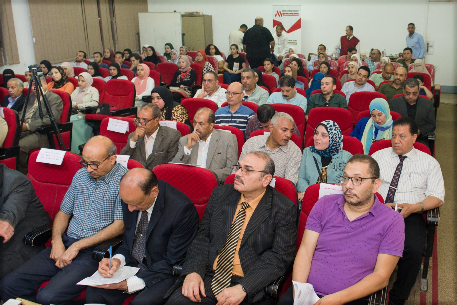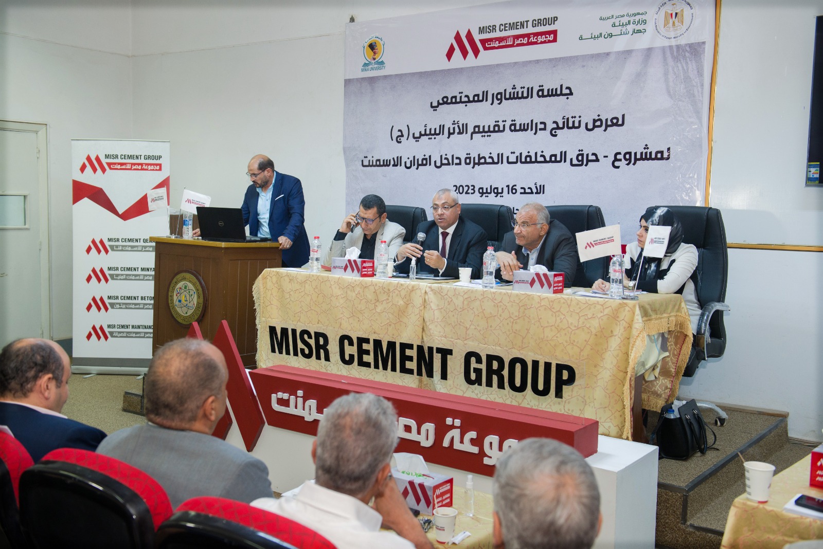 حضر الندوة عميد كلية العلوم ووكلائها، ود. مصطفي محمود عميد كلية الهندسة، ود. محمد علي مراد وكيل كلية الهندسة لشئون الدراسات العليا والبحوث، ولفيف من أعضاء هيئة التدريس والباحثين في التخصصات المختلفة، وبحضور رجال الصناعة من مجموعة مصر للأسمنت؛ المهندس بسام عبد الرسول، رئيس المجموعة الفنية، والمهندس محمود موسي، مدير مصنع أسمنت المنيا، وكذلك ممثلي جهاز شئون البيئة وإدارة المخلفات الصلبة بوزارة البيئة.