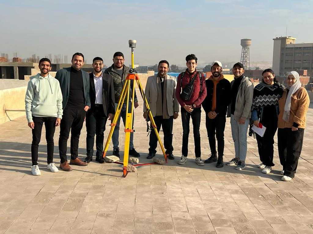 جاء ذلك فى إطار تلقى الدكتور السيد قنديل تقريرًا حول مناقشة مشروعات التخرج المساحية لطلاب قسم الجيوماتكس في نهاية الفصل الدراسي الثاني للعام الجامعي ٢٠٢٢/ ٢٠٢٣، حيث قام الطلاب بدراسة مساحية شاملة لمعهد إعداد القادة بوزارة التعليم العالي والبحث العلمي، وكذلك جامعة حلوان، تضمنت المشاريع العديد من الجوانب المساحية المهمة وتم فى البداية التجهيز للمشروع من خلال توزيع طلاب البرنامج المشاركين فى المشروع المساحى على مجموعتين، مجموعة لرفع مساحة معهد اعداد القادة بالكامل، ومجموعة اخرى من الطلاب لرفع مساحة جامعة حلوان بما يضمن تحقيق اقصى إفادة ممكنة فى رفع الجامعة والمعهد مساحيا، حيث تم رفع المساحة للجامعة والمعهد أسبوعيا بشكل متواصل من خلال عدة مراحل وتمثلت المرحلة الأولى فى " عمل دراسة استطلاعية مساحية لجامعة حلوان بالكامل وكذلك معهد اعداد القادة لتحديد اماكن نقط Static وربطها بالصور الفضائية عن طريق برنامج Sas planet، ثم وضع نقطة اساس من قبل طلاب والتى تم من خلالها جميع الاعمال المساحية لإنتاج خرائط عالية الدقة لمعهد إعداد القادة وجامعة حلوان، كما تم رصد بعض النقاط بطريقة RTK