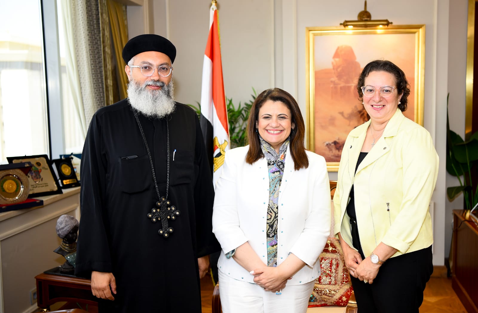 استقبلت السفيرة سها جندي، وزيرة الدولة للهجرة وشئون المصريين بالخارج، القس بيشوي وصفي، راعي كنيسة السيدة العذراء مريم في مقاطعة مسيساجا بكندا، وفيبي وصفي، مديرة مدرسة فيلوباتير كولدج المصرية في كندا، والتي كرمها فخامة رئيس الجمهورية أثناء فعاليات المؤتمر الوطني للشباب بالإسكندرية.