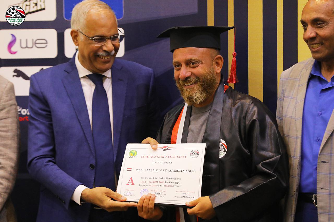 وفى ختام المراسم، قام جمال علام وأعضاء مجلس ادارة الاتحاد على تسليم المدربين شهادة الحصول على الدبلومة الأفريقية A، والتقاط صور جماعية مع جميع المدربين وعددهم 25 مدربًا ومدربة، هم عبد الظاهر السقا وعلي ماهر ومحمد عبد الكريم ووائل رياض ومجدي عبد العاطي وعادل مصطفى وأمير عبد العزيز وعبد الباقي جمال وأحمد عبد المقصود وأمير عمر النور وخالد علي ووليد سليمان وعمر اسلام ومحمد سعد واسلام يوسف وأحمد عبده وخالد جلال وأميرة محمد وطارق سليمان وطلعت محرم وأحمد أيوب وعماد النحاس وميرهان يحيى ومحمد كمال ومصطفى لطفي.