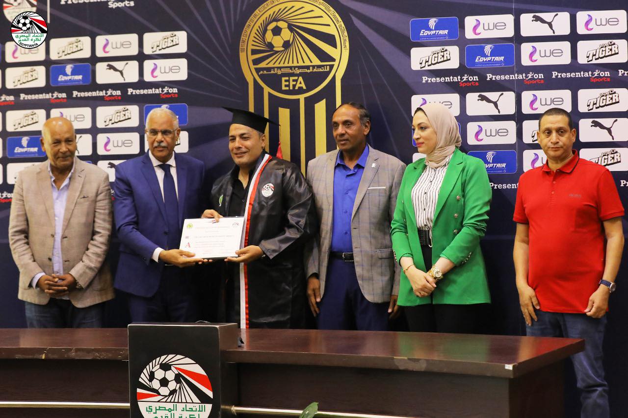 الدبلومة الأفريقية A، شهد الاتحاد المصرى لكرة القدم، اليوم الثلاثاء، مراسم تخرج مدربي الدبلومة الأفريقية A، بحضور جمال علام رئيس الاتحاد واللواء محمد حلمى مشهور والأستاذ محمد أبو الوفا والدكتورة دينا الرفاعى أعضاء المجلس، والدكتور جمال محمد على مدير إدارة المدربين بالاتحاد، والكابتن فتحى نصير مدير إدارة القطاعات والكابتن عبد المنعم شطة المحاضر الدولي والمدير الفني السابق للكاف.