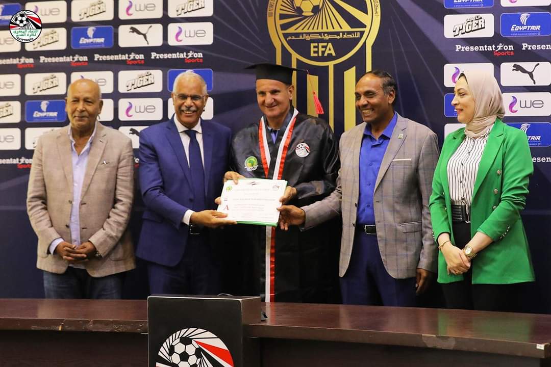 شهد الاتحاد المصرى لكرة القدم، اليوم الثلاثاء، مراسم تخرج مدربي الدبلومة الأفريقية A، بحضور جمال علام رئيس الاتحاد واللواء محمد حلمى مشهور ومحمد أبو الوفا والدكتورة دينا الرفاعى أعضاء المجلس، والدكتور جمال محمد على مدير إدارة المدربين بالاتحاد، والكابتن فتحى نصير مدير إدارة القطاعات والكابتن عبد المنعم شطة المحاضر الدولي والمدير الفني السابق للكاف.