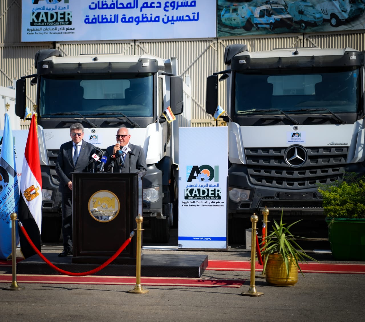 شهد الدكتور "طارق العربي " رئيس جهاز تنظيم إدارة المخلفات التابع لوزارة البيئة، نيابة عن الدكتورة ياسمين فؤاد وزيرة البيئة واللواء أ.ح مهندس "مختار عبد اللطيف" رئيس الهيئة العربية للتصنيع، بمقر مصنع قادر للصناعات المتطورة التابع للهيئة، احتفالية تسليم مرحلة جديدة من المعدات والمركبات تحت شعار "صنع في مصر ".