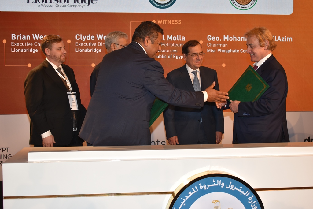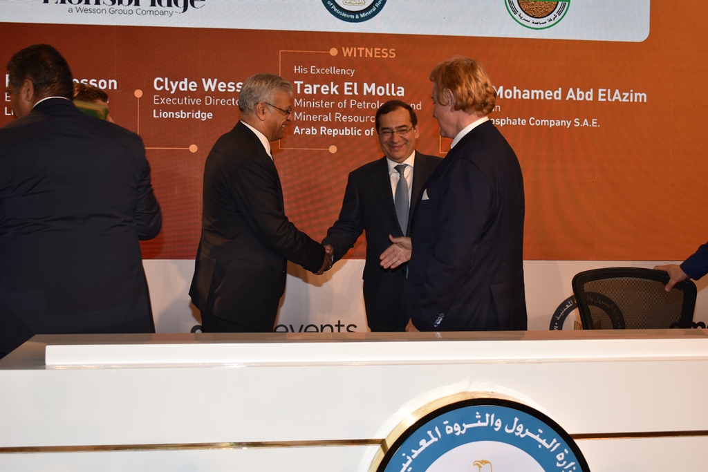 بمشاركة من المهندس طارق الملا وزير البترول والموارد المعدنية، براين ويسون، الرئيس التنفيذي، ليونسبريدج، كلايد ويسون، المدير التنفيذي، ليونزبريدج، والمهندس محمد عبد العظيم رئيس مجلس إدارة شركة مصر للفوسفات S.A.E.