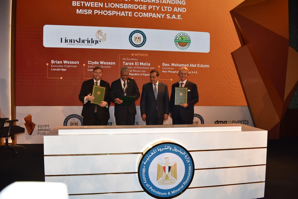 وجرى توقيع تفاهم بين ليونسبريدج PTY LTD وشركة Misr Phosphate - شركة فوسفات مصر S.A.E