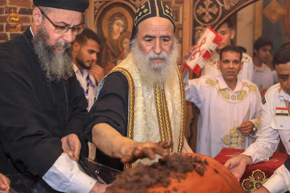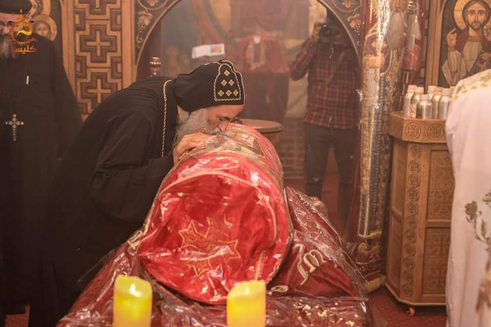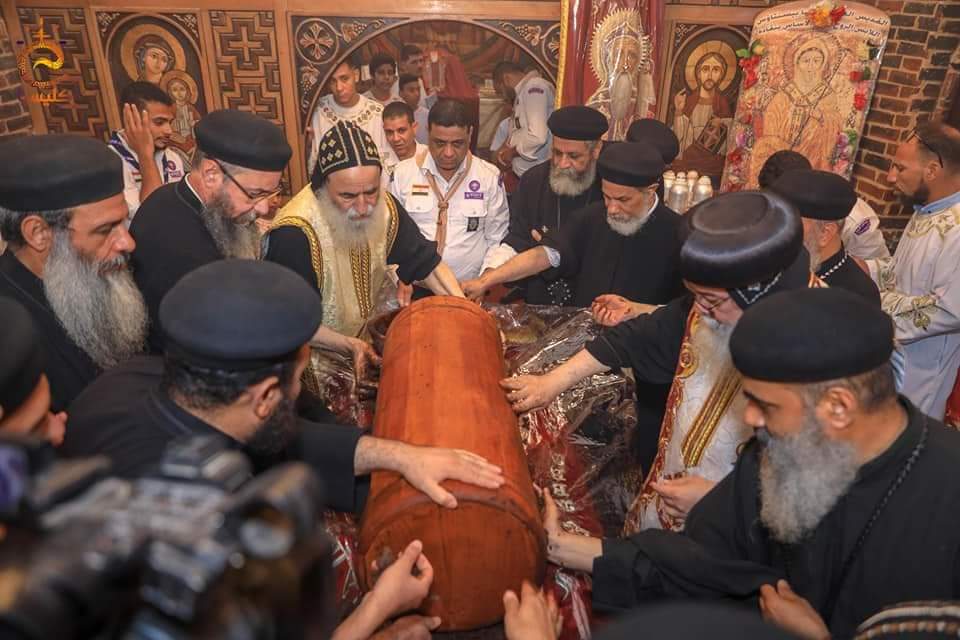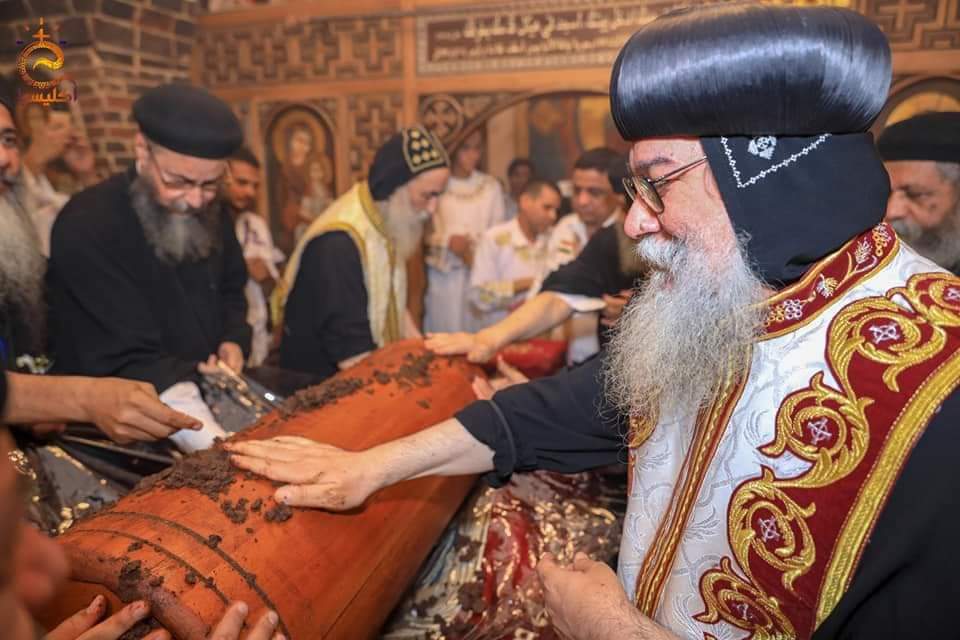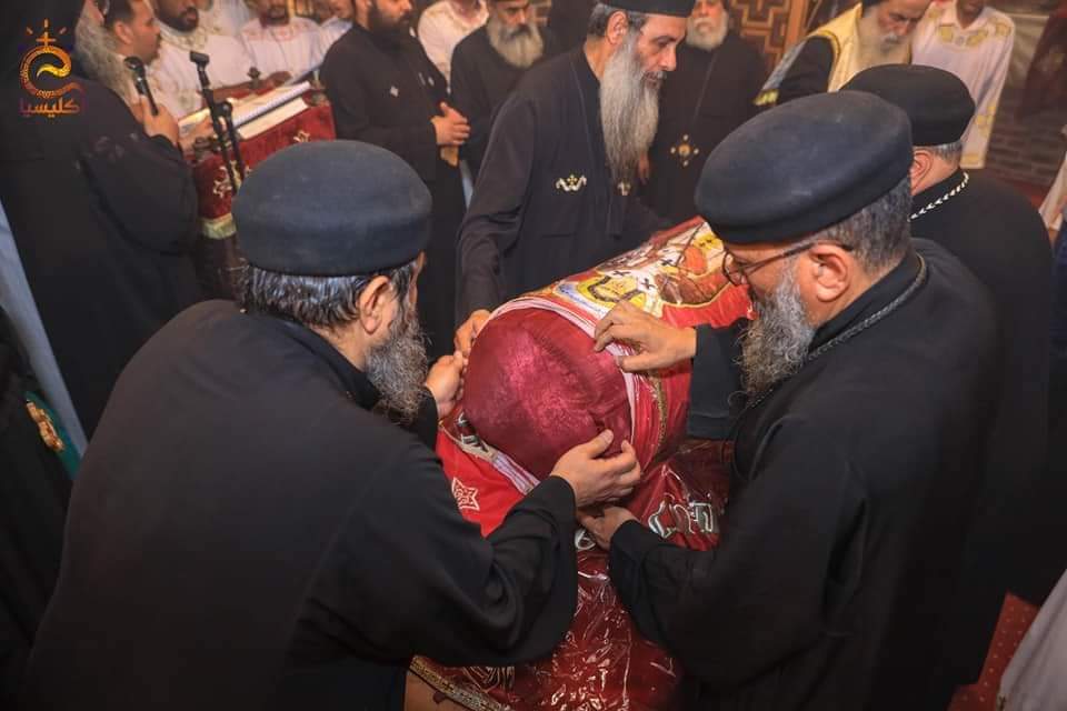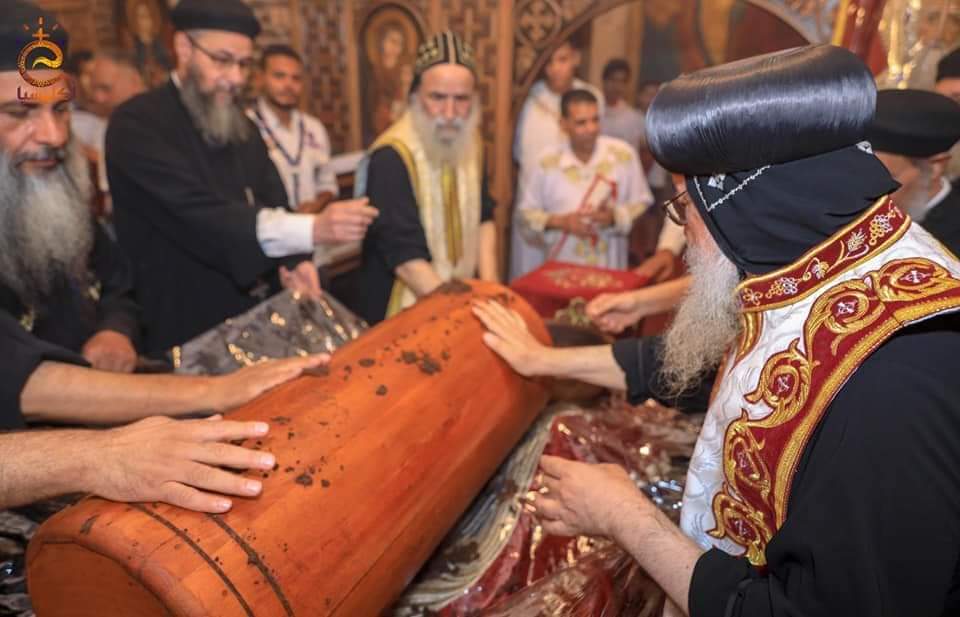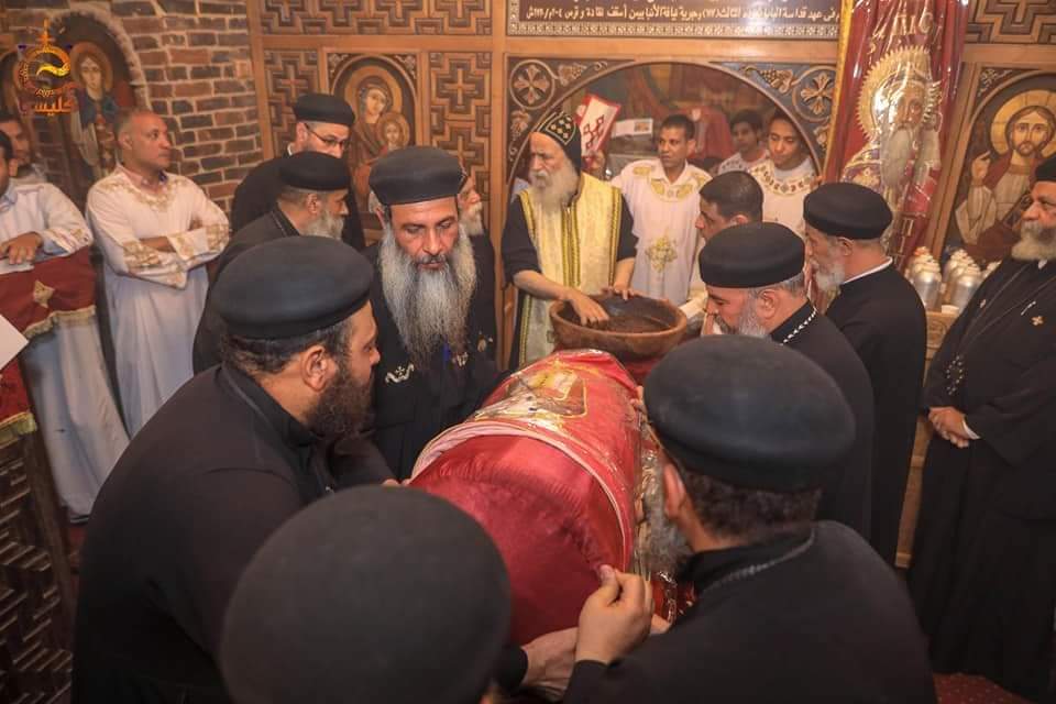 11-تم العثور على رفات القديس الأنبا بسنتاؤس اللابس الروح خلال أعمال الترميم بديره أغسطس 2018، وأثناء العمل بالمذبح الأوسط ويحمل اسمه.