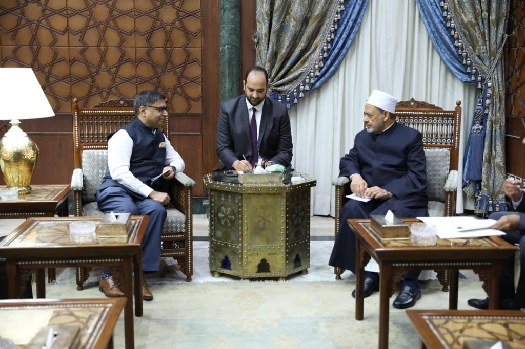 استقبل الإمام الأكبر د.أحمد الطيب، شيخ الأزهر الشريف، فيكرام ميسري، نائب مستشار الأمن القومي الهندي، يرافقه السيد أجيت جوبتيه، السفير الهندي لدى القاهرة، لبحث سبل تعزيز الحوار بين الأديان والتعاون المشترك.