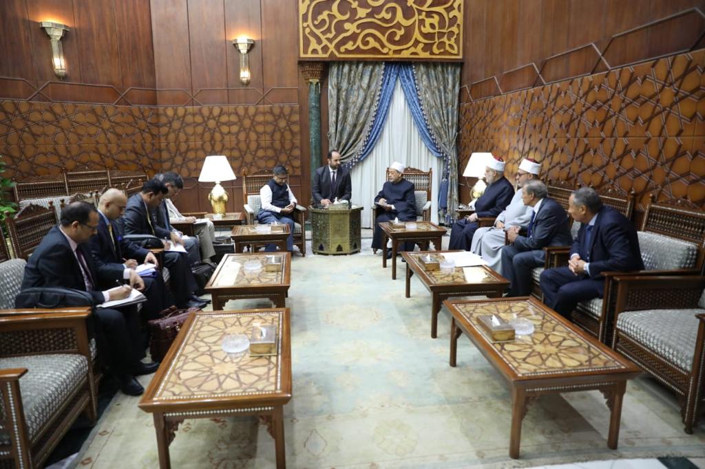 ورحب فضيلة الإمام الأكبر بزيارة الهند وعقد مباحثات مع مختلف الطوائف الدينية والمؤسسات الثقافية في البلاد، بما يخدم القضاء على كل صور التعصب، ونشر قيم الحوار وترسيخ الاحترام المتبادل.