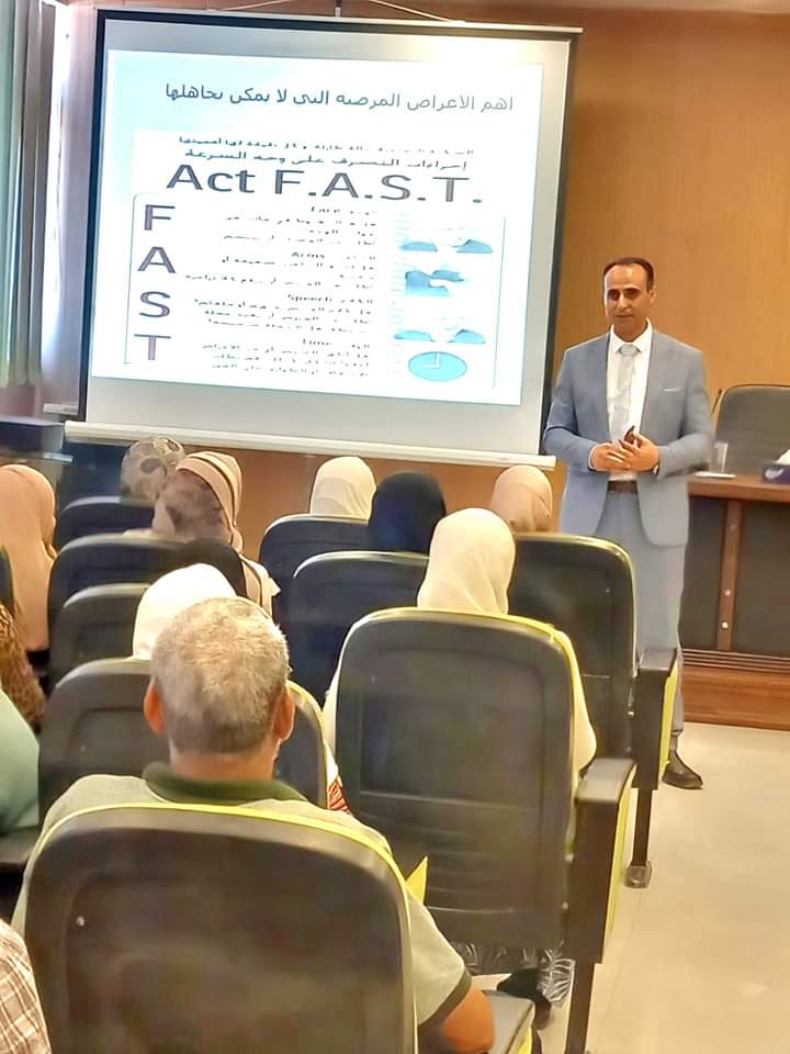 ثم تناول بعد ذلك الحديث عن جلطات القلب وأعراضها وأسبابها وعلاجها، وطريقة عمل الإنعاش القلبي الرئوي، وكذا الإسعافات الأولية وطرق التعامل مع الحالات المختلفة