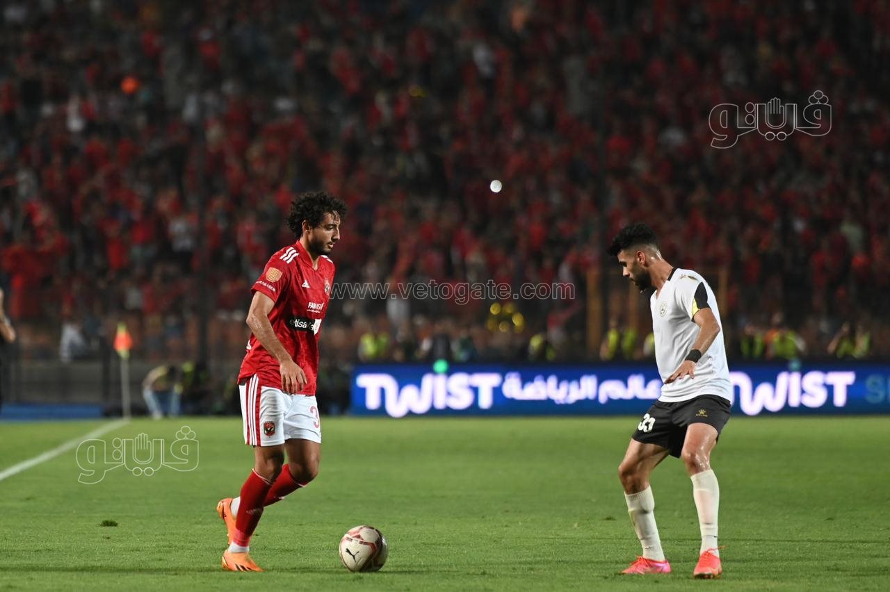 وتواصل الضغط الأهلاوي عن طريق الشحات وكهربا ولكن نجح الحرس في التماسك حتى نهاية الشوط الأول.