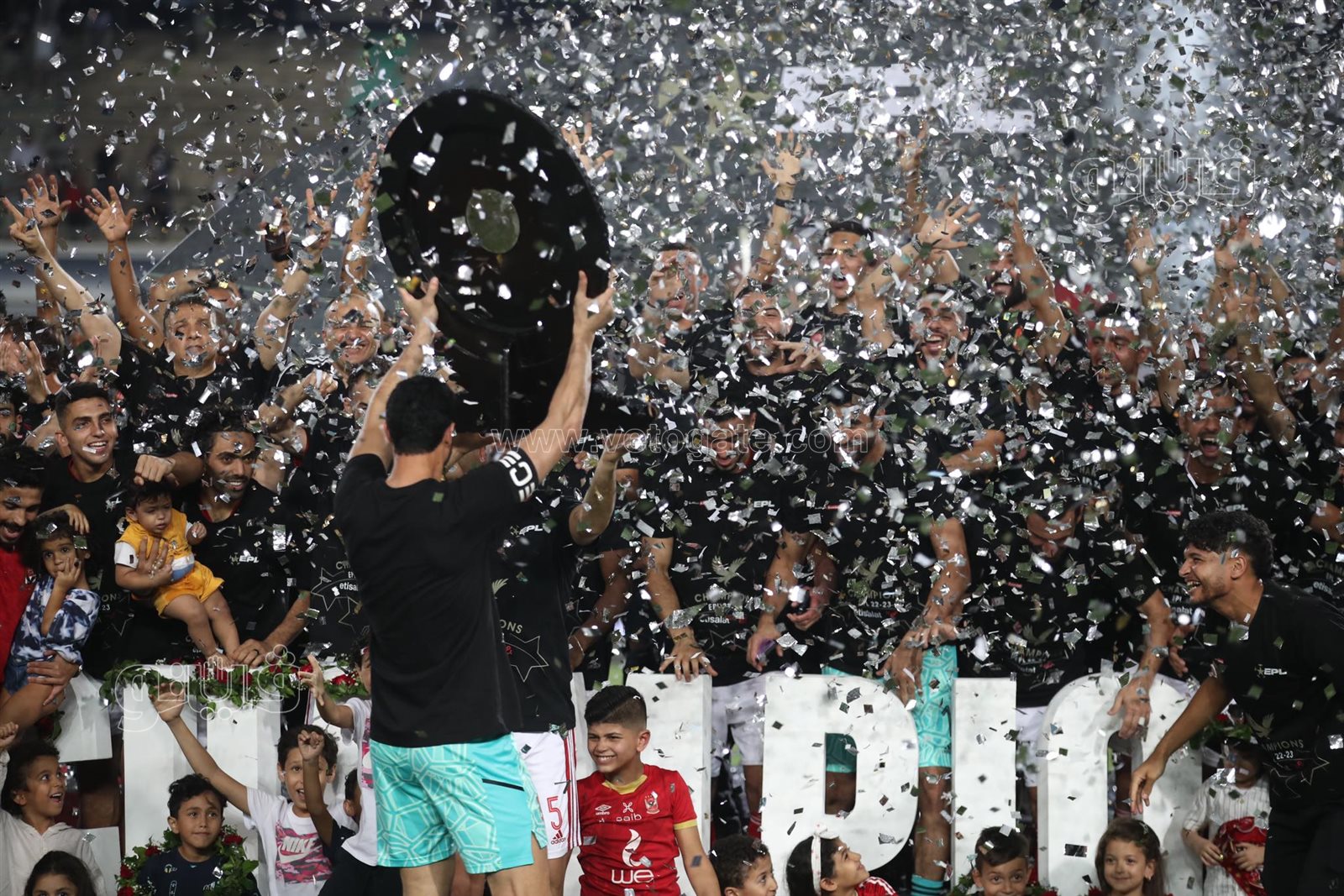 وتواجد العائلات رفقة النادي الأهلي داخل أرضية ملعب ستاد القاهرة أثناء احتفال لاعبو المارد الأحمر بدرع الدوري.