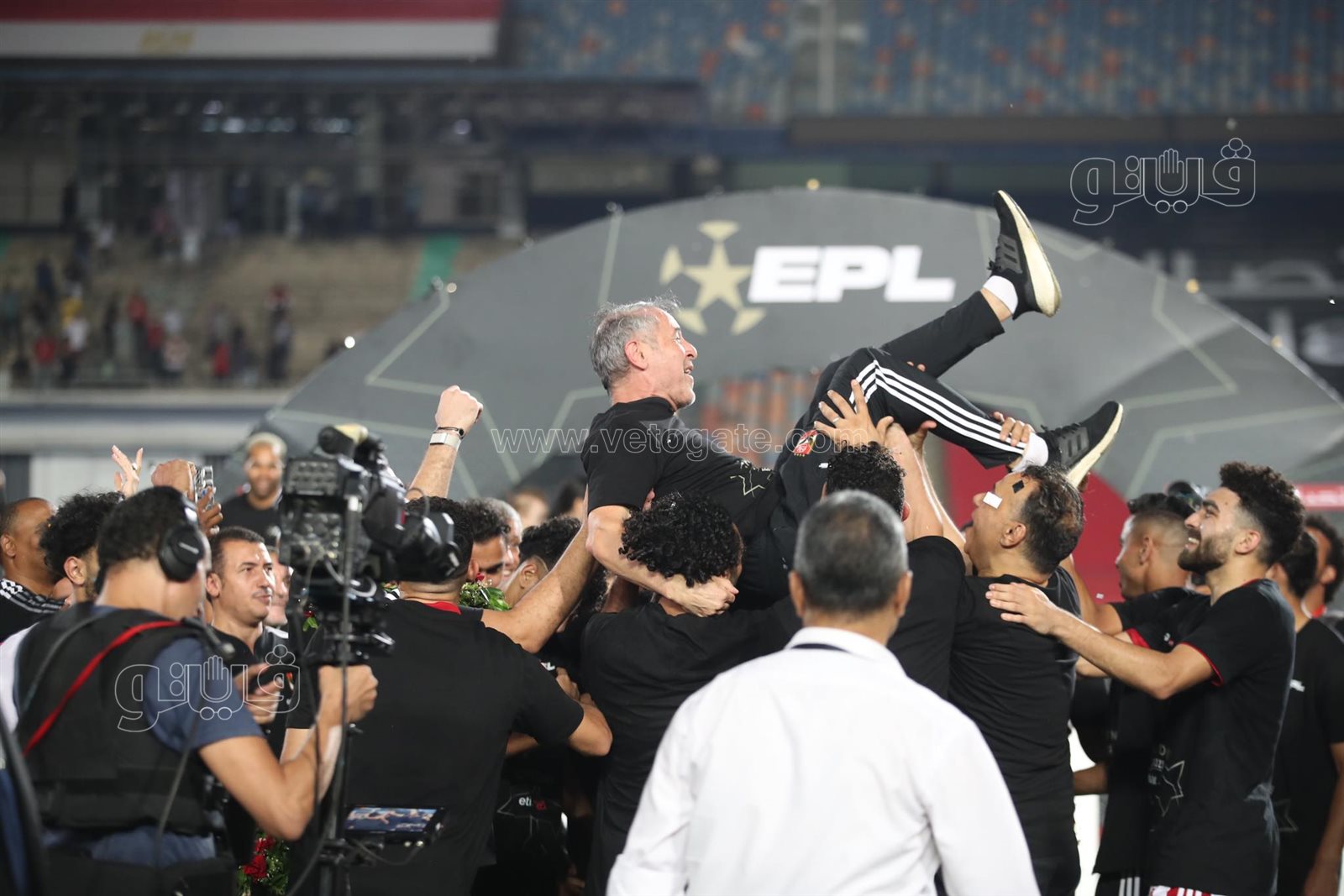 الخطيب يقلد لاعبي الأهلي باقات الورود في احتفالية التتويج بالدوري