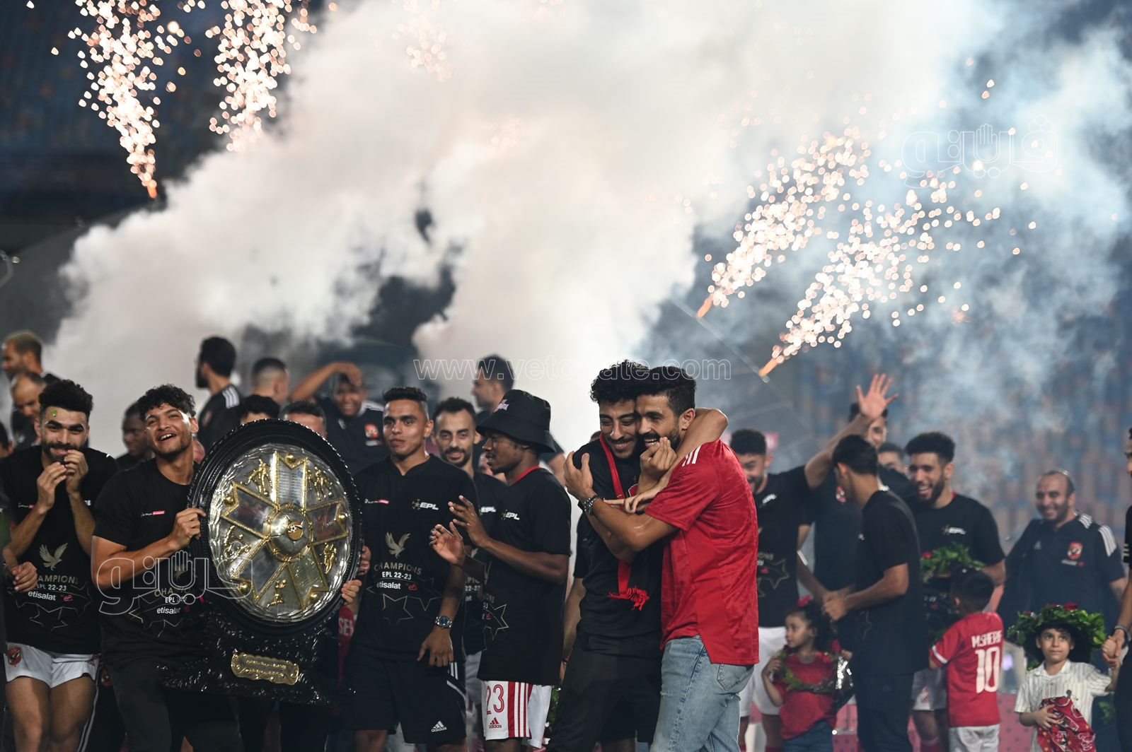 وغني طاهر محمد طاهر الأغنية الشهيرة (أوو سطلانه مع جماهير النادي الأهلي) وتواجد العائلات رفقة النادي الأهلي داخل أرضية ملعب إستاد القاهرة أثناء احتفال لاعبو المارد الأحمر بدرع الدوري.