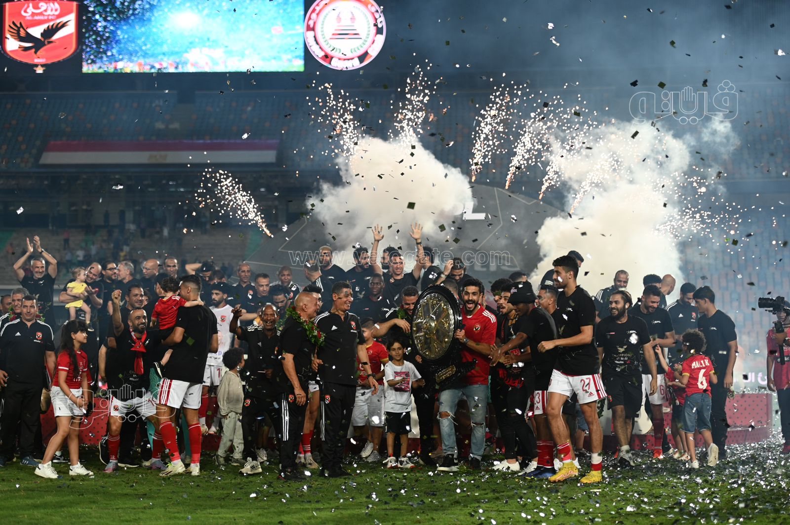 احتفل لاعبو الفريق الأول لكرة القدم بالنادي الأهلي بلقب الدوري رقم 43 في تاريخ القلعة الحمراء، بعد انتهاء مباراتهم أمام حرس الحدود بالتعادل الإيجابي بهدف لكل فريق.