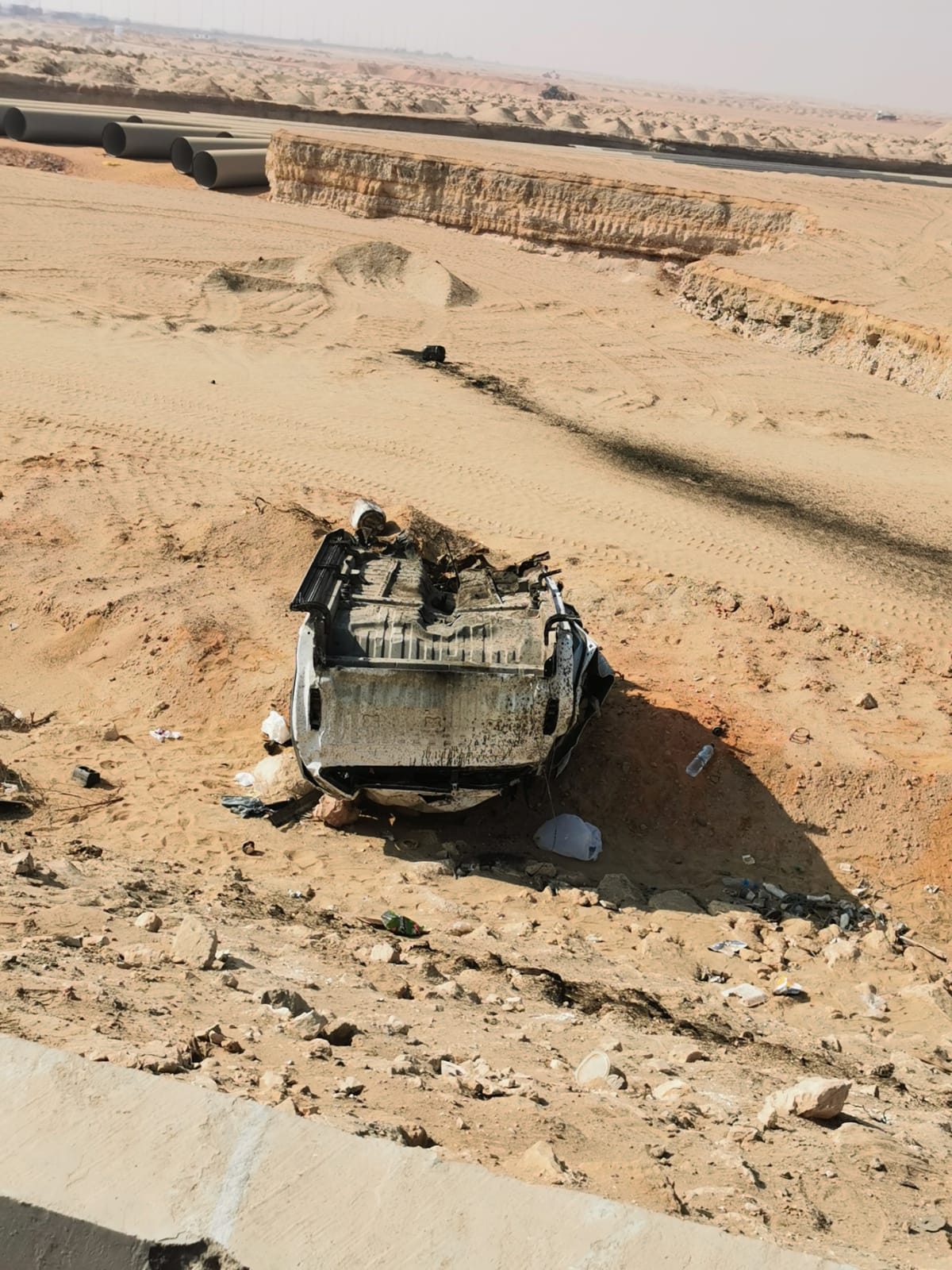 مصرع شابين إثر إنقلاب سيارة بطريق الضبعة قبل نزلة الطريق الاوسطى