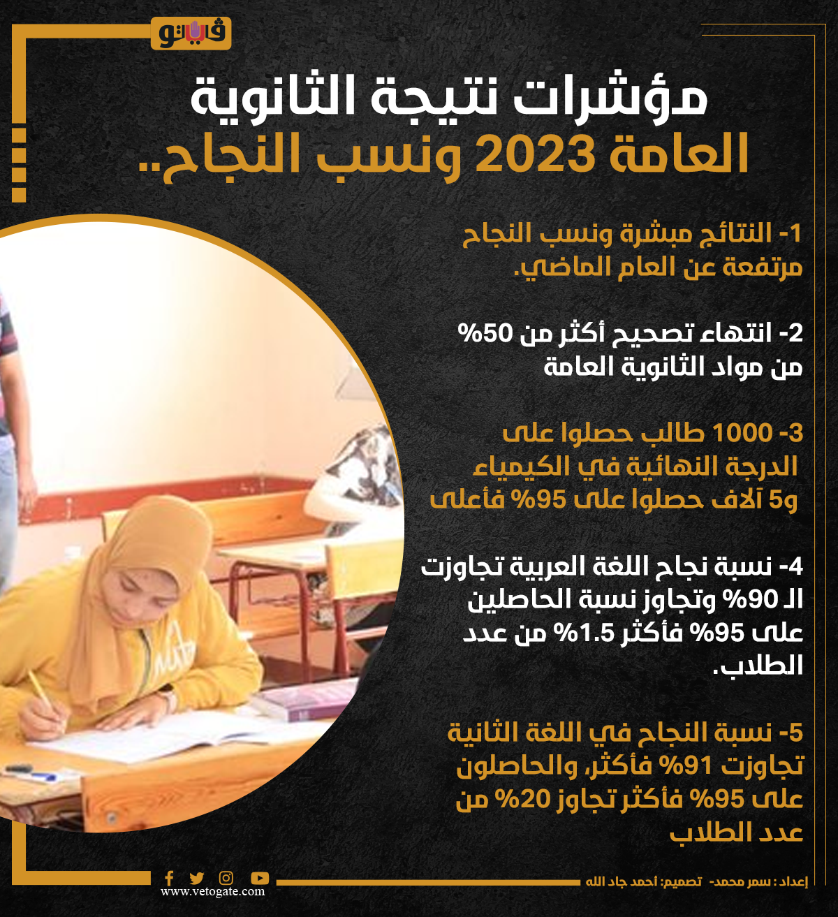 مؤشرات نسب النجاح في نتيجة الثانوية العامة 2023