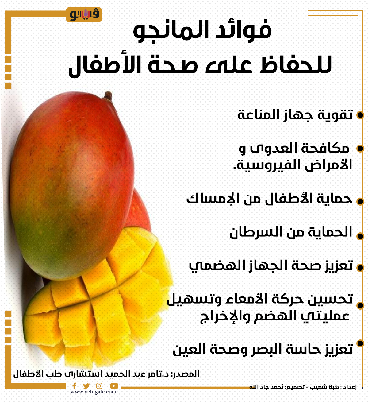 فوائد المانجو للحفاظ على صحة الأطفال|انفوجراف الثلاثاء 25/يوليو/2023 - 01:28 م 7/25/2023 1:28:49 PM فوائد المانجو، فيتو هبة شعيب شارك طباعة 18 حجم الخط شارك طباعة فوائد المانجو فوائد المانجو للأطفال الدكتور تامر عبد الحميد صحة الصحة