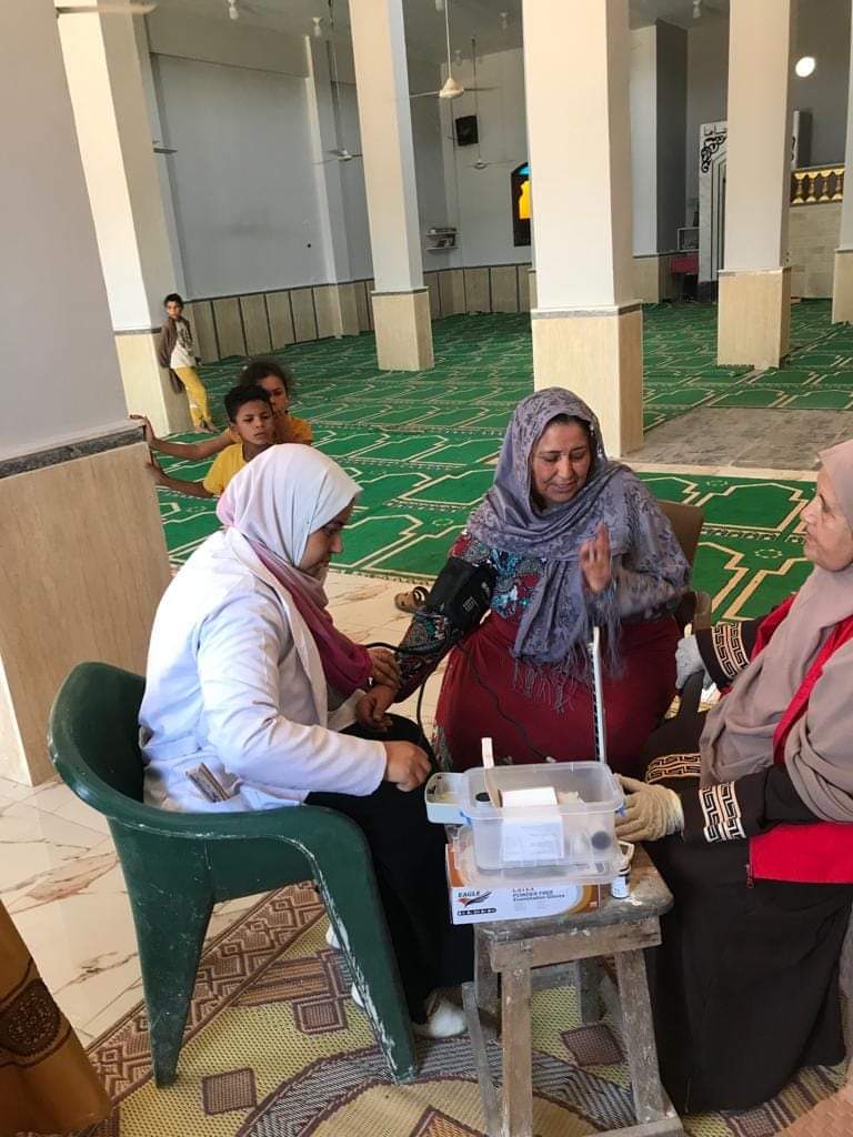 حيث قامت الفرق بإجراء الكشف الطبي على المواطنين والموظفين بعدد من دور العبادة والوحدات المحلية المختلفة.
