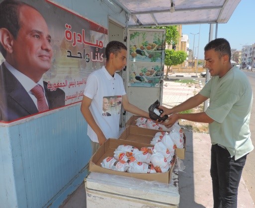كما تم التنسيق مع عدد من السلاسل التجارية الكبرى المشاركة فى المبادرة بإجمالى (1364) فرع على مستوى الجمهورية، فضلًا عن إطلاق قوافل سيارات مجهزة بـ5 سيارات لكل قافلة وذلك لطرح السلع الغذائية وتستهدف تلك القوافل المناطق الأكثر إحتياجًا بنطاق محافظات "القاهرة – الجيزة – القليوبية".