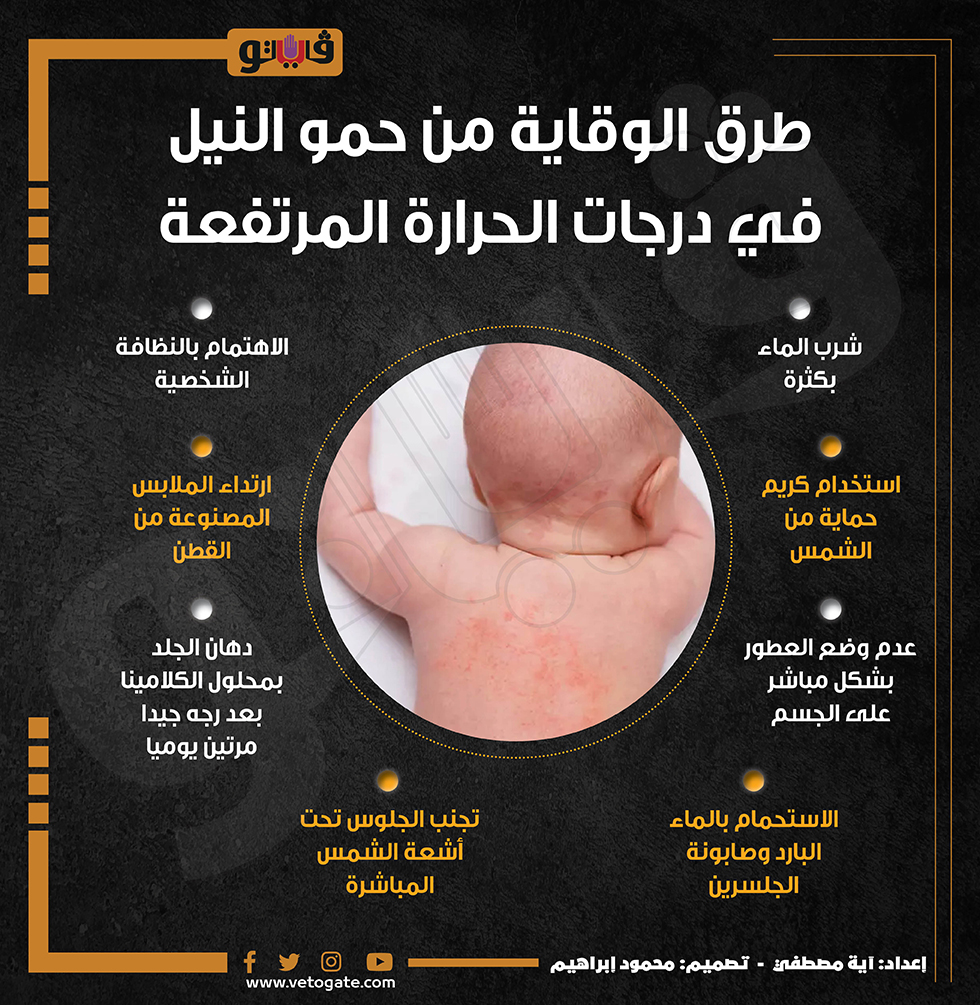 طرق الوقاية من حمو النيل في درجات الحرارة المرتفعة (إنفوجراف) السبت 22/يوليو/2023 - 11:52 ص 7/22/2023 11:52:29 AM حمو النيل، فيتو آية مصطفى شارك طباعة 18 حجم الخط شارك طباعة درجات الحرارة المرتفعة النظافة الشخصية الاستحمام بالماء البارد أشعة الشمس المباشرة شرب الماء درجات الحرارة حمو النيل
