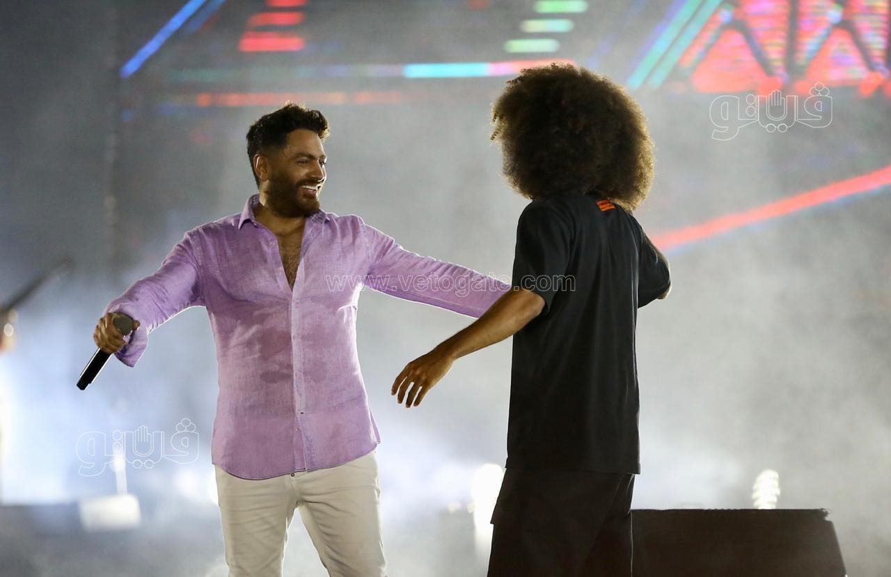 تامر حسني يرقص مع البلوجر الألماني نويل روبنسون في حفل العلمين الجديدة (صور)
