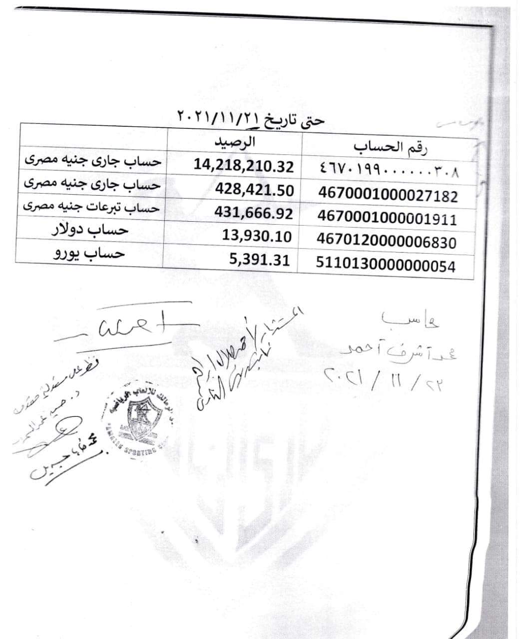 ونشر حسين لبيب عبر صفحته الرسمية على موقع التواصل الاجتماعي فيس بوك مستندا يثبت أنه ترك النادي به سيولة مالية كبيرة تفوق 14 مليون جنيه حيث كتب:"الزمالك اولا ، يبدو أن الصمت ترفعًا إلي حين قد جعل البعض يستمرئ أن يطال الكذب والتضليل ما لا يتصوره بشر ولا يمكن أن يدركه عاقل وهو ما أثار حفيظة الجمهور المحترم وخلق حالة من فقدان الثقة والإحباط وهو أيضا ما يدفعنا للرد على ما أثير مؤخرا عن الوضع المالي لنادي الزمالك حال تسليمه من اللجنة المعينة للمجلس الحالي وما أثير حول وجود مبلغ ٦٩٠٠٠ جنيه فقط هي كل السيولة المتوفرة ويأتي هذا على عكس ماجاء رسميا في محاضر التسليم والاستلام المذيلة بتوقيعات أعضاء لجنة الاستلام وممهوره بالأختام أيضا والتي أفادت بوجود ما فاق ١٤ مليون جنيه مصري ما بين خزينة النادي وحسابات البنوك والتي لم يكن محجوزا عليها في حينه. هذا بخلاف حساب العملات الأجنبية في هذه البنوك أيضا وهو ما جعلنا نعرضه الآن لاستجلاء الحقيقة ومخاطبين جمهور نادينا الأوفياء".