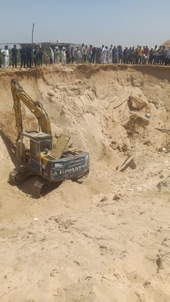 السيد. ف. ع" 20 عاما بدون عمل مقيم أبوتارى - دائرة مركز ابوصوير، محمد. ف. م" 45 عاما عامل بناء مقيم البلابسة - دائرة مركز ابوصوير، ويوسف. ع. م" 63 عاما بالمعاش مقيم بسرابيوم - دائرة مركز فايد بالتنقيب عن الآثار بأرض المزرعة المشار إليها على مساحة حوالى 5 أفدنة وانهالت الرمال على الأول والثانى - كما تبين وجود حفرة بعمق حوالي 23 مترا تقريبًا وبقطر 2 متر.
