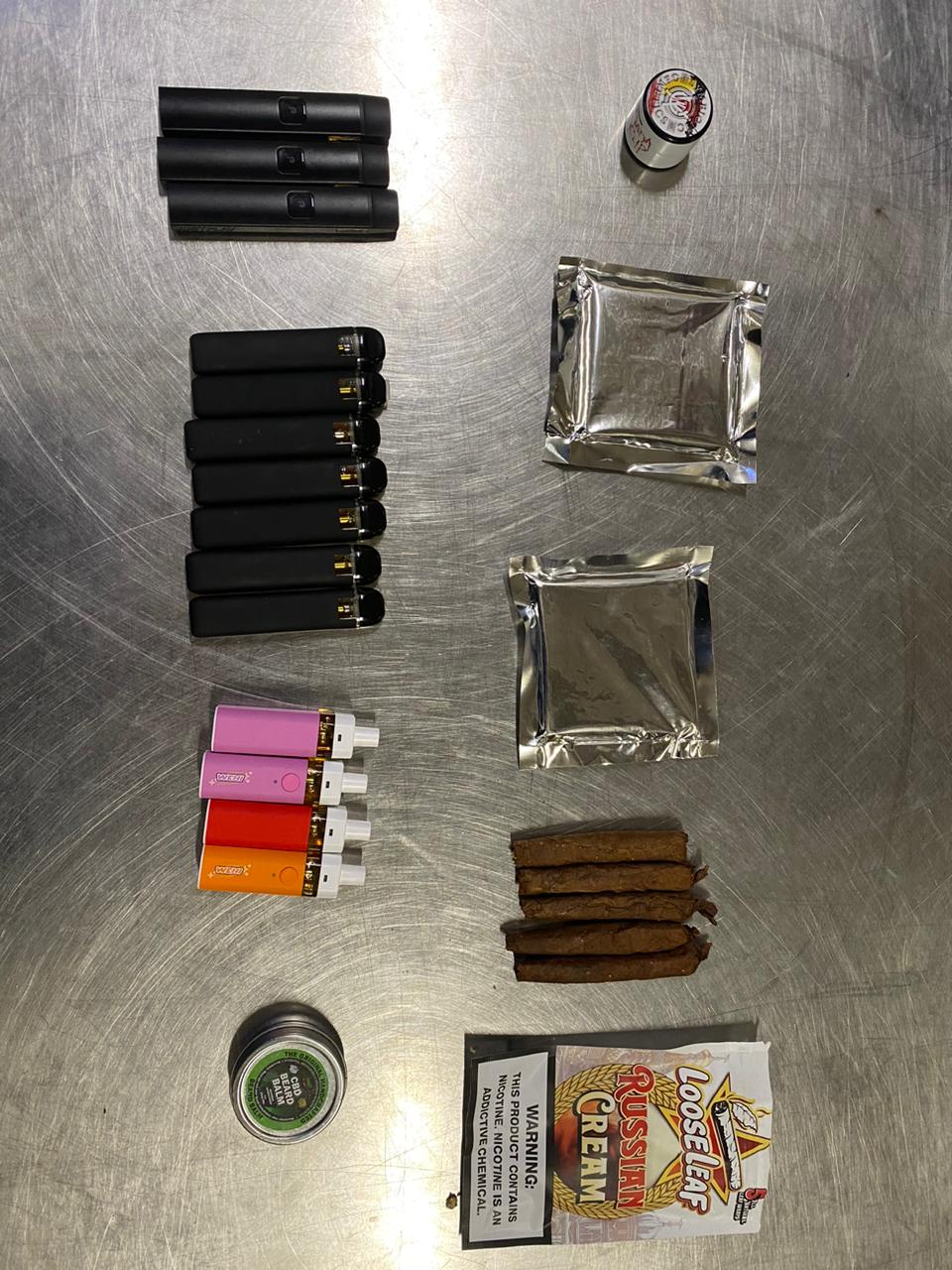 وقام هاني أحمد ابو طالب مدير الحركة المشرف على صالة الوصول بمبني الركاب رقم ٣، بتكليف علاء عبد الرحمن خضر مأمور الجمرك، بتفتيش حقائب الراكب يدويا مما اسفر عن ضبط كمية متنوعة من المخدرات منها كيس واحد بداخله خمسة سجائر بنية اللون بهم مخدر الماريجوانا وقطعتين شيكولاتة بهم نفس المخدر بوزن ١٠٦ جرام، وعلبة فضية بها مخدر cbd وعلبة سوداء بداخلها مادة مخدرة و١٤ سيجارة الكترونية بهم زيت الماريجوانا وجهاز مكون من خمس قطع يستخدم في تعاطي المواد المخدرة.
