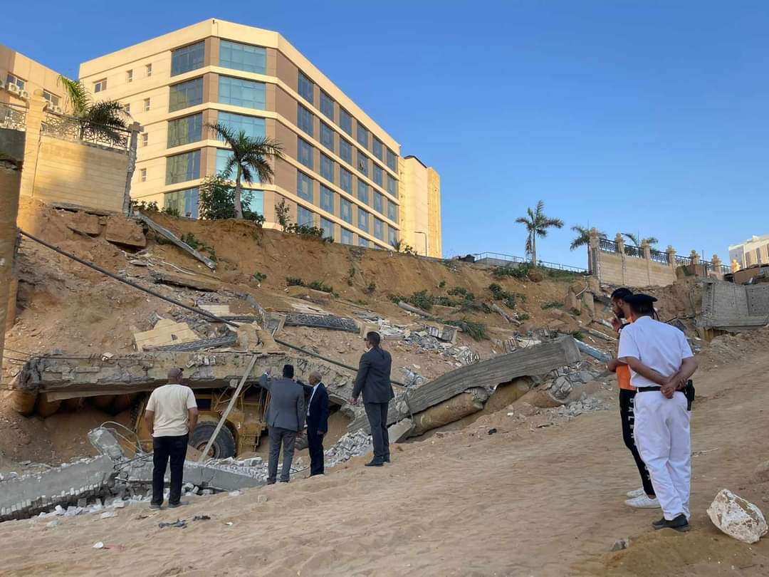 كما كشفت المعاينة عن انهيار مجموعة من الأعمدة الساندة للتربة الموجودة بقطعة الأرض الفضاء، وسقوط عدد منها على "اللودر" المتسبب في الحادث، حيث تم إخطار جهاز مدينة القاهرة الجديدة وإيقاف كافة الأعمال الإنشائية الجارية.