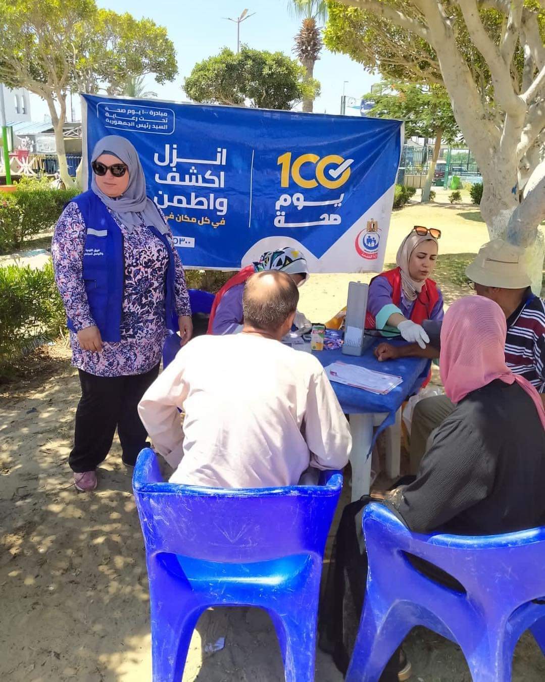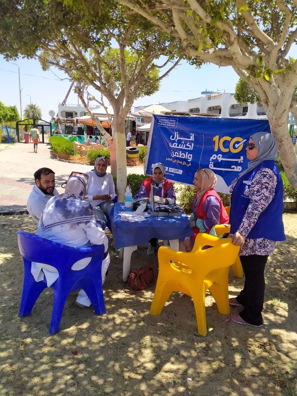 وتواصل فرق مديرية الصحة والسكان في محافظة الإسماعيلية أعمالها في مبادرة "حملة 100 يوم صحة"، والتي تستهدف عمل مسح صحي للمواطنين، حيث تكثف الفرق أعمالها أماكن تجمعات المواطنين ومن بينها الشواطئ والتي يتواجد عليها مواطني الإسماعيلية بسبب ارتفاع درجات الحرارة.