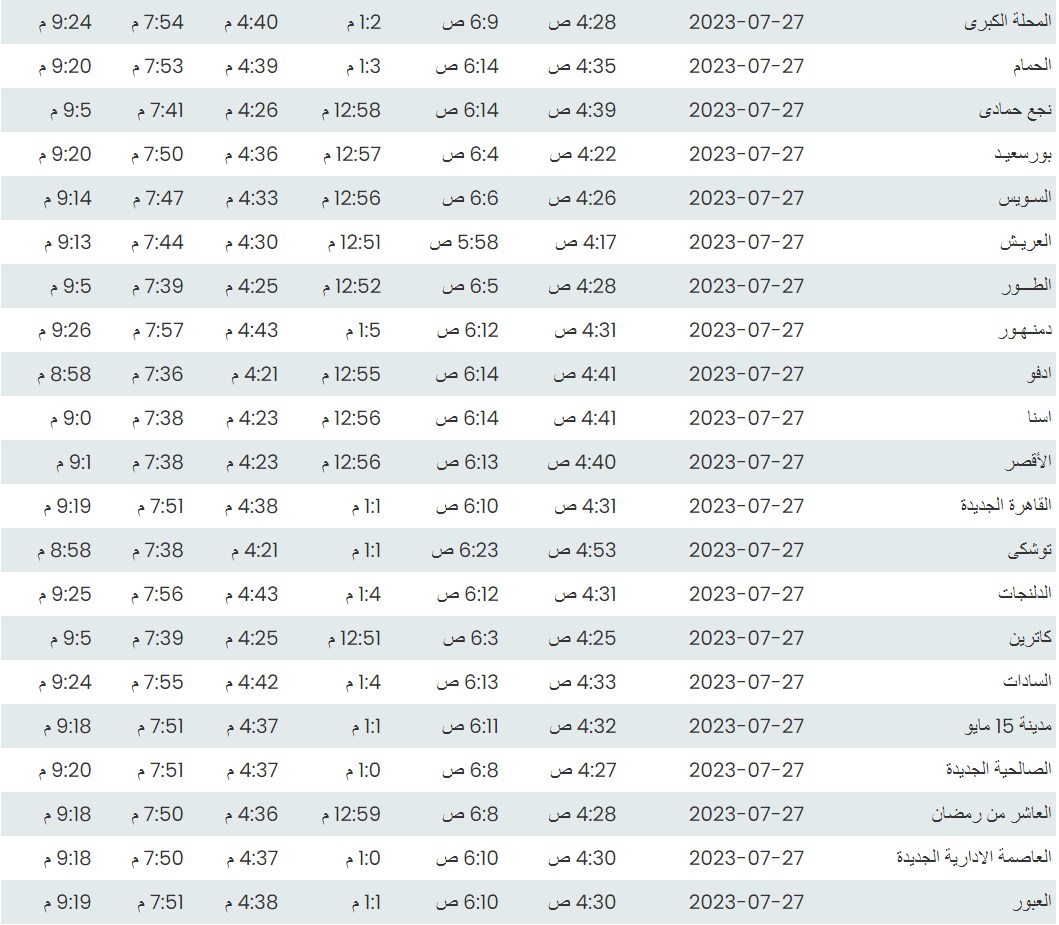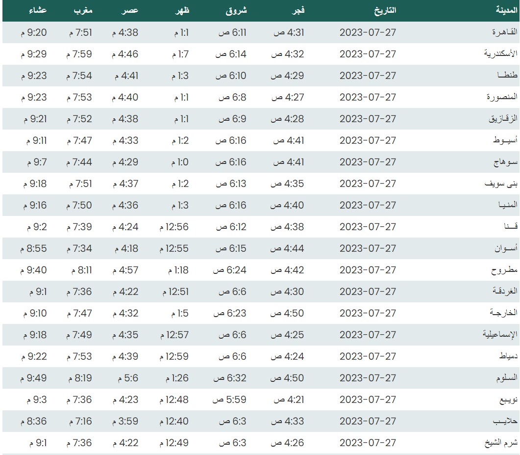 مواقيت الصلاة اليوم بتوقيت القاهرة