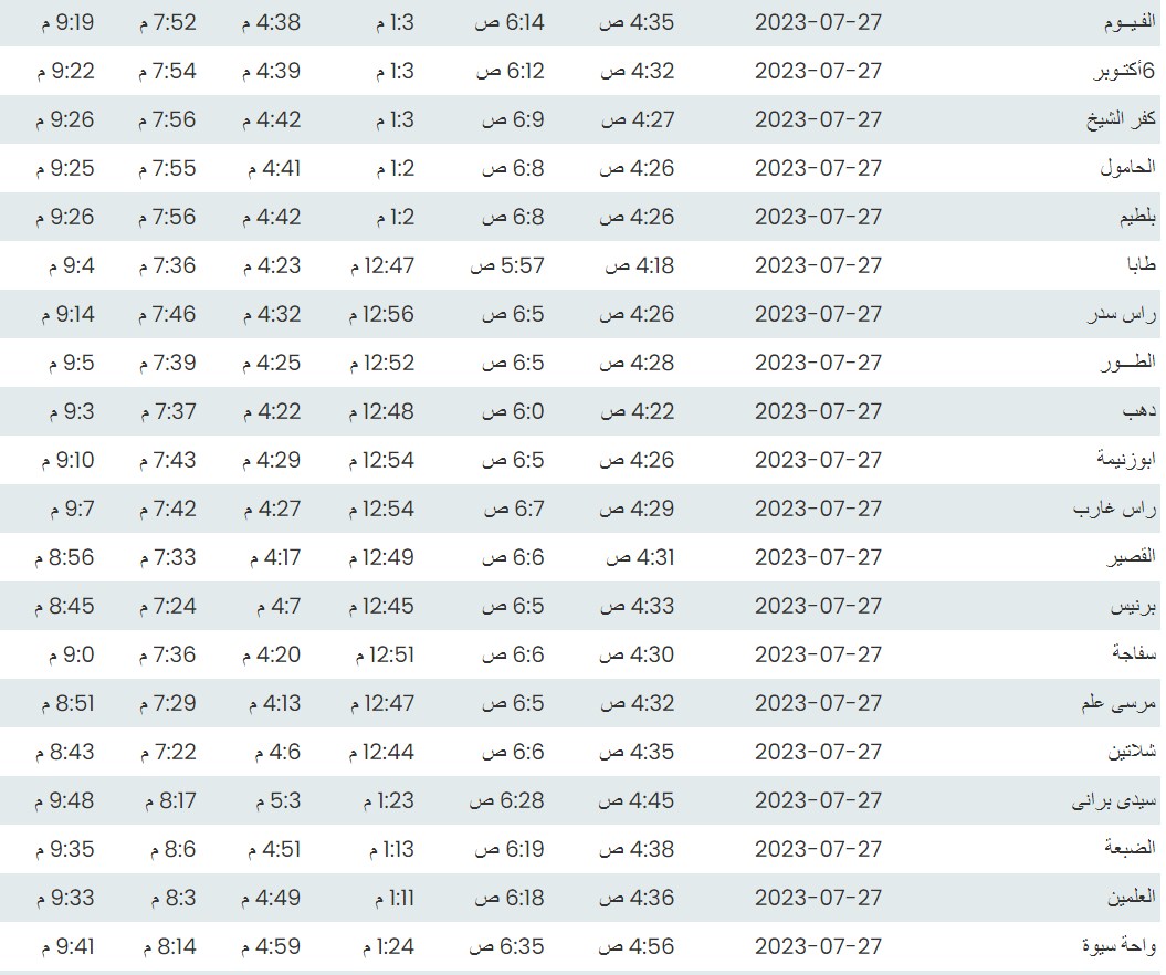 مواقيت الصلاة اليوم بتوقيت أسيوط