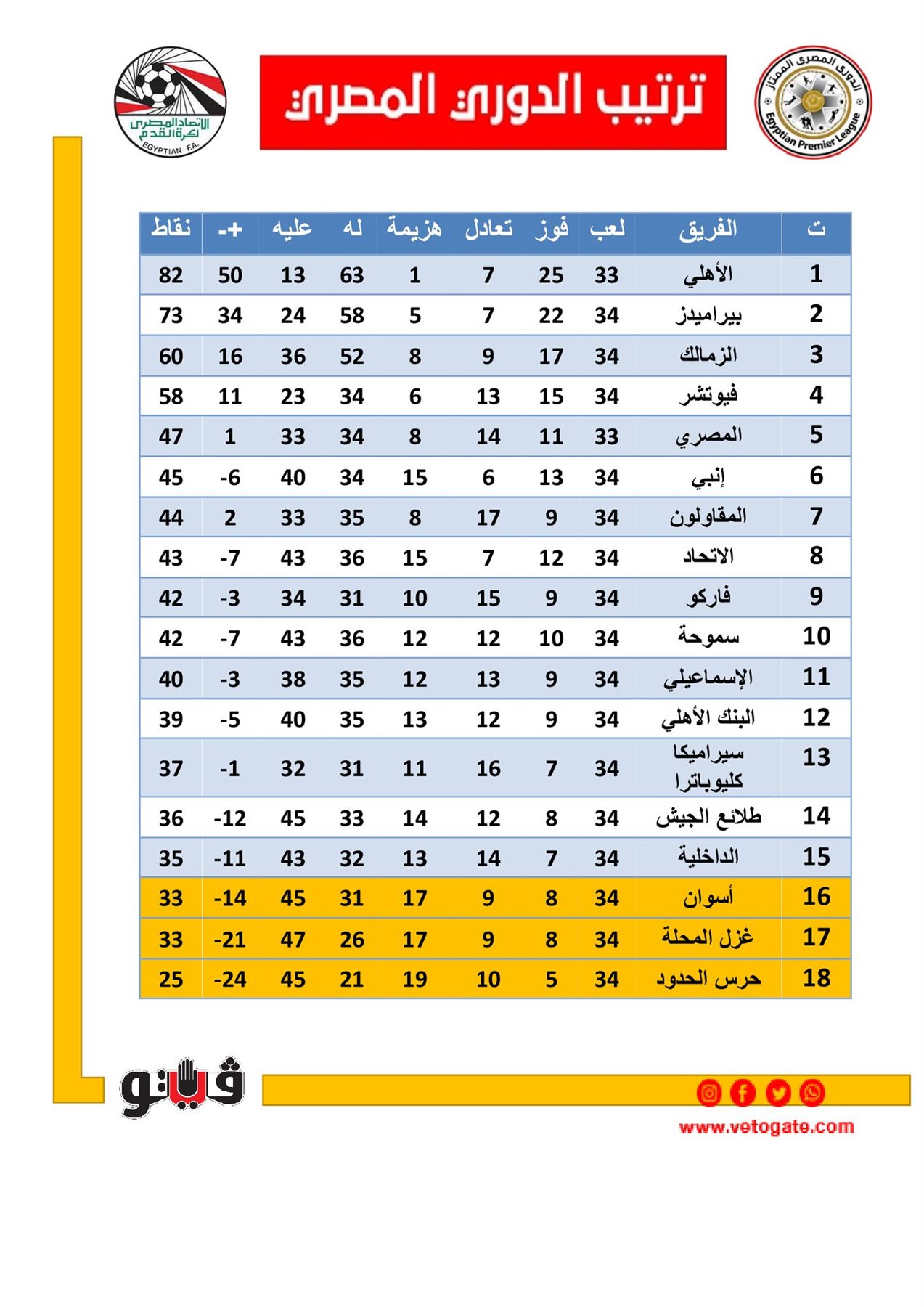 ترتيب فرق الدوري المصري بعد هزيمة الأهلي من بيراميدز