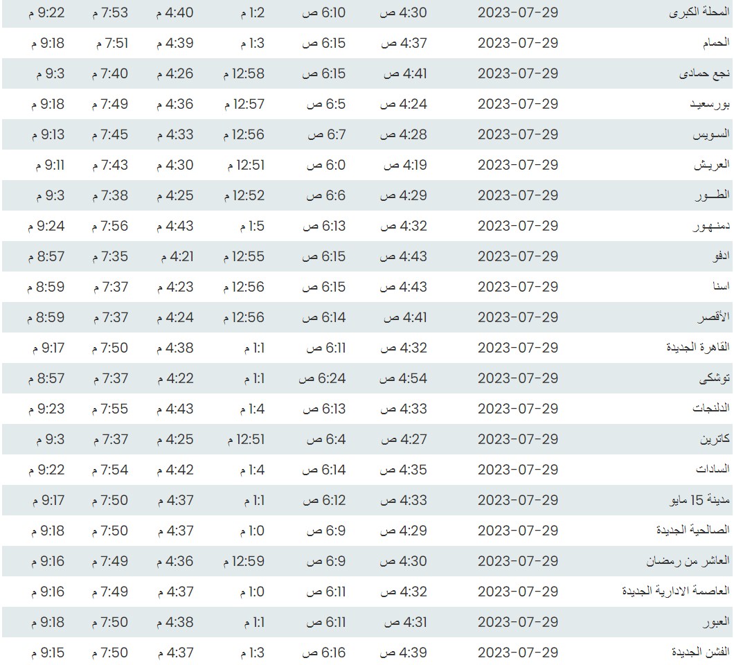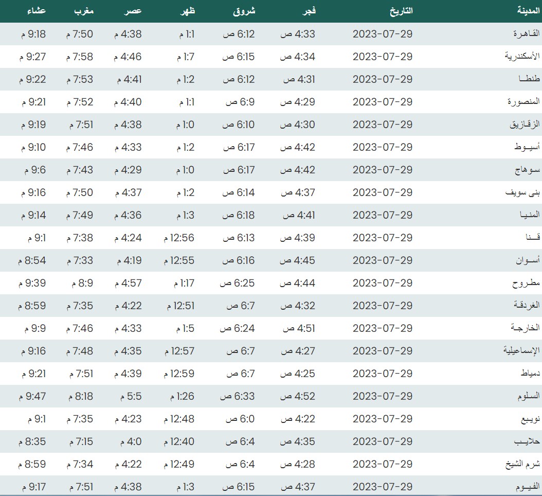 مواقيت الصلاة اليوم بتوقيت القاهرة