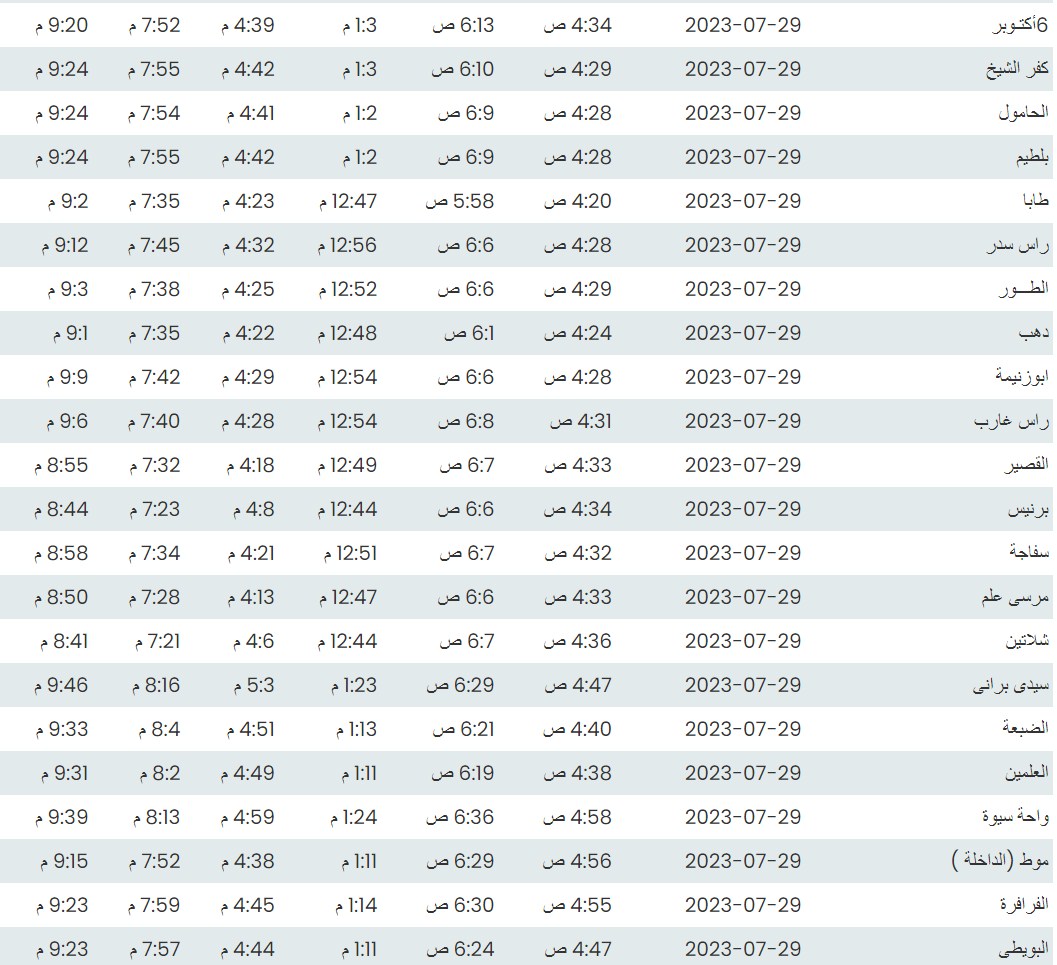 مواقيت الصلاة اليوم بتوقيت الإسكندرية