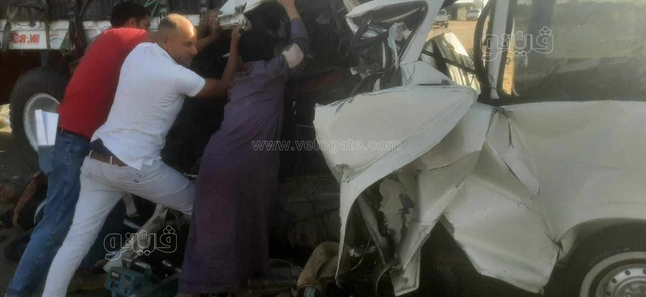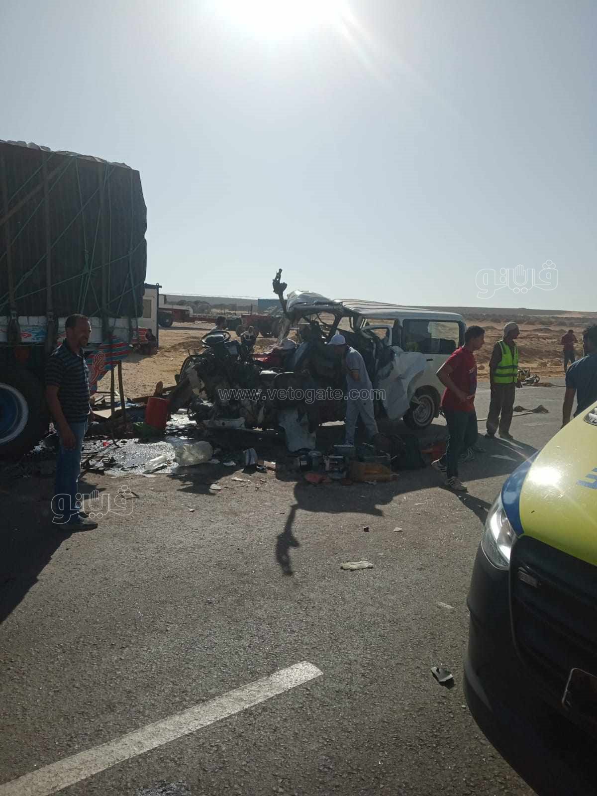 مصرع وإصابة 10 أشخاص في تصادم سيارتين على محور الضبعة (صور)