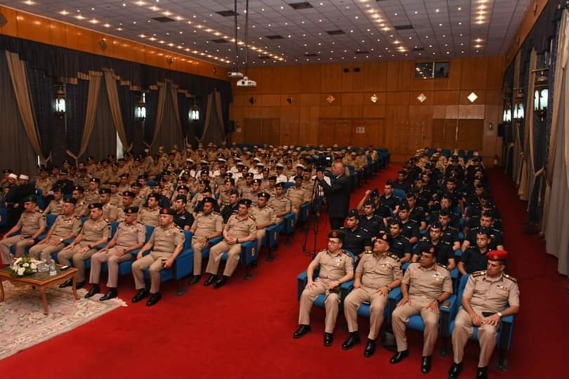 وألقى اللواء خالد أحمد شوقى مساعد وزير الدفاع كلمة نيابة عن الفريق أول محمد زكى القائد العام للقوات المسلحة وزير الدفاع والإنتاج الحربى أكد فيها أن رجال القوات المسلحة ماضون بإرادة قوية وعزيمة لا تلين فى حماية الوطن وصون مقدساته، مقتدين بسيرة الرسول الكريم محمد صلوات الله عليه وسلامه فى الصدق والإخلاص والتضحية والصبر فى مواجهة التحديات، والعمل الجاد بإيمان وثقة فى المولى عز وجل للوفاء بالمهام والمسئوليات المكلفين بها.