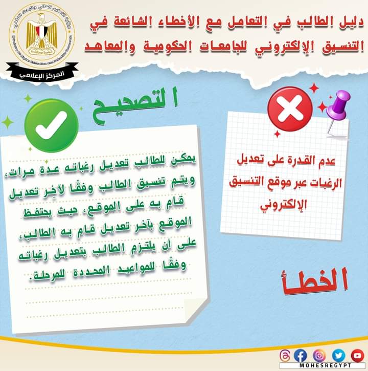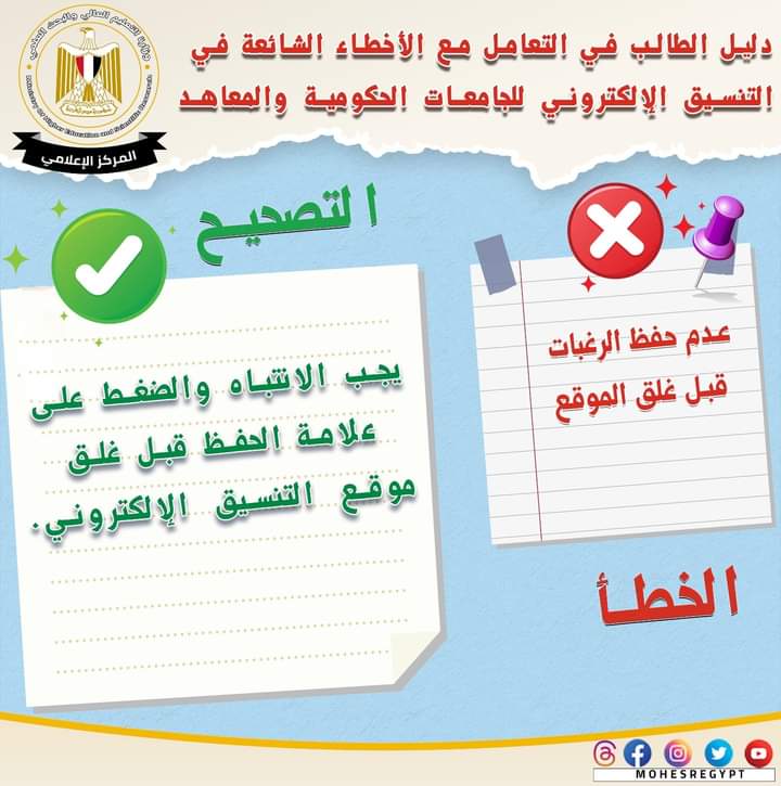 تنسيق الجامعات 2023، كيفية التعامل مع الأخطاء الشائعة في تنسيق القبول بالجامعات؟