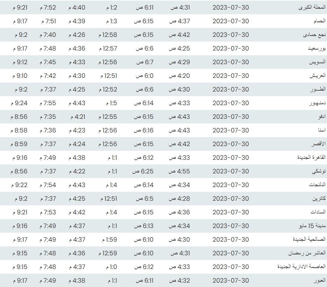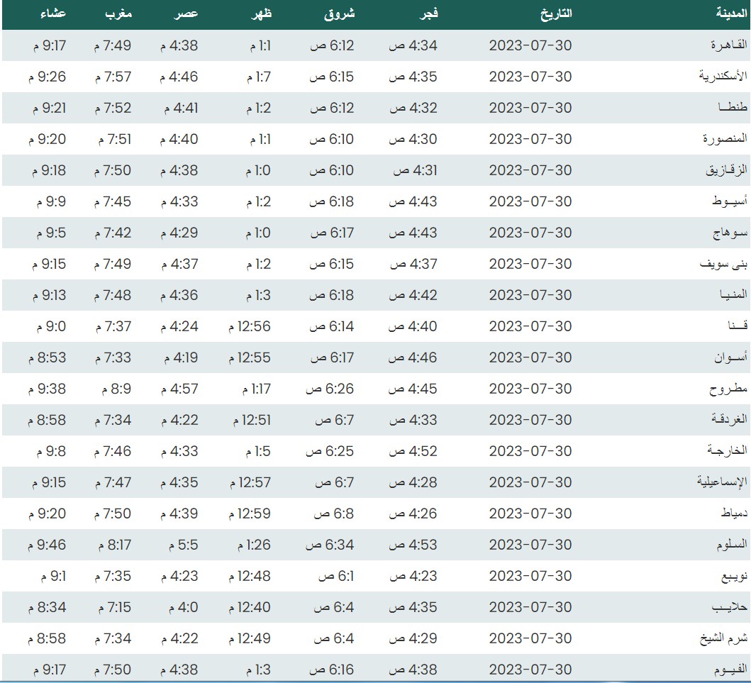 مواقيت الصلاة اليوم بتوقيت القاهرة