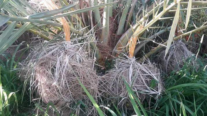 3- تحمى البلح من بعض الأمراض والحشرات، كما تسهل جمع المحصول وتمنع تساقطه في الأرض.