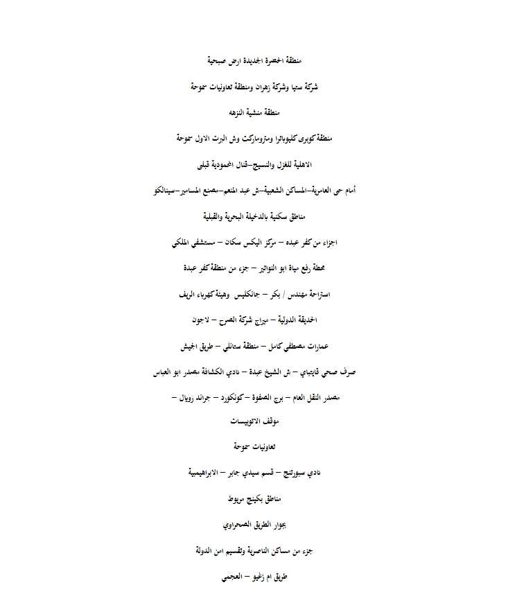 وفي هذا الإطار يمكن الدخول على الموقع التالي والضغط على التوقيت لمعرفة جدول المناطق التى سيتم فصل التيار عنها خلال كل توقيت