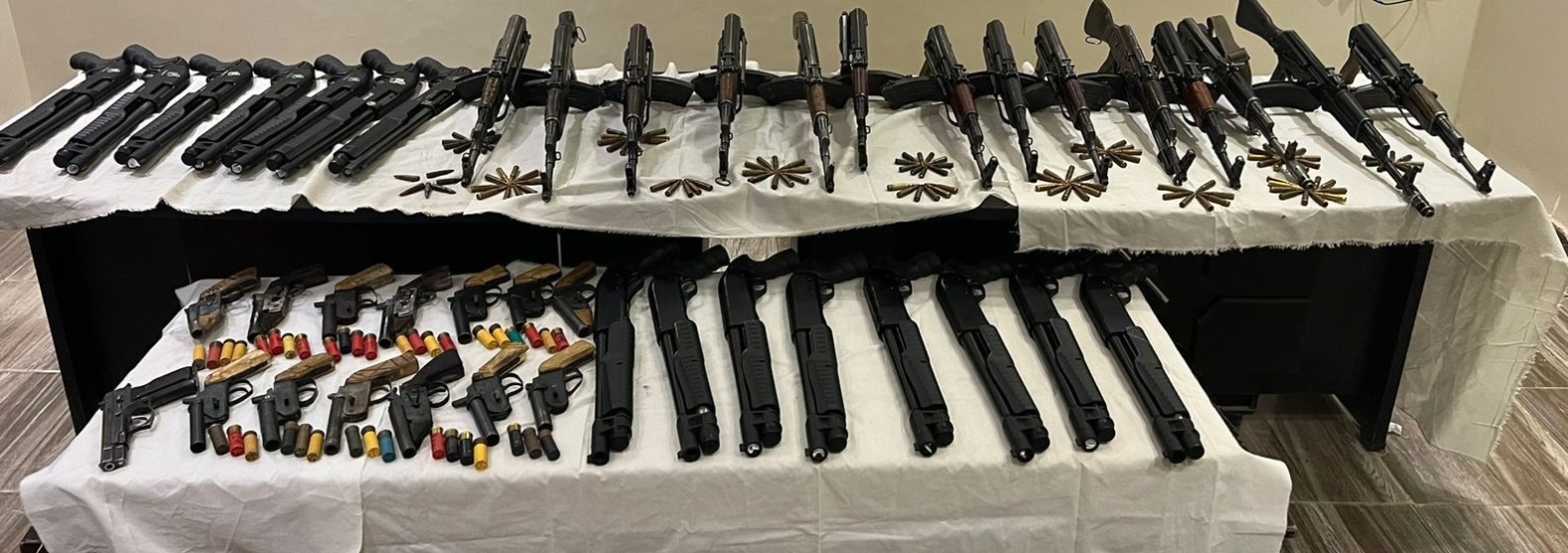 وأسفرت جهودها عن ضبط 30 قطعة سلاح نارى (3 بنادق آلية – 4 بنادق خرطوش – 23 فرد محلى – عدد من الطلقات مختلفة الأعيرة).. بحوزة (19 متهم "لـ 7 منهم معلومات جنائية") وتم اتخاذ الإجراءات القانونية.