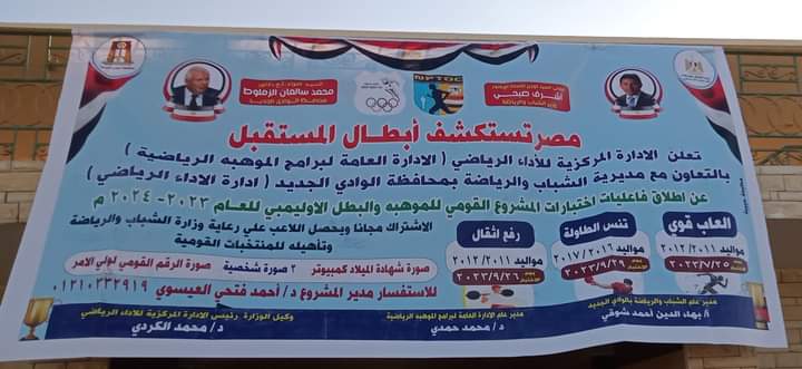 125 مشاركا في اختبارات المشروع القومي للموهبة والبطل الأوليمبي بالوادي الجديد